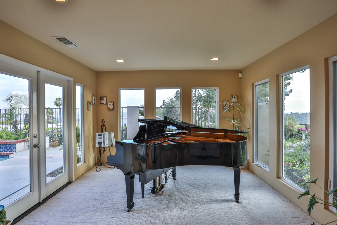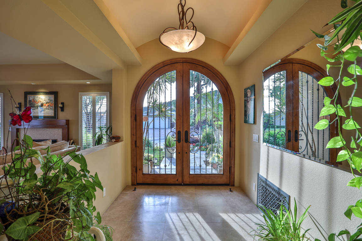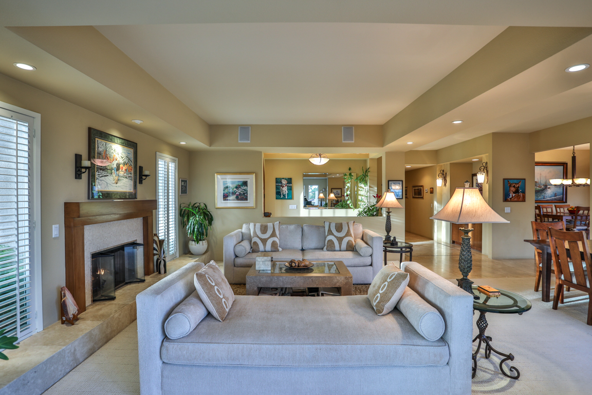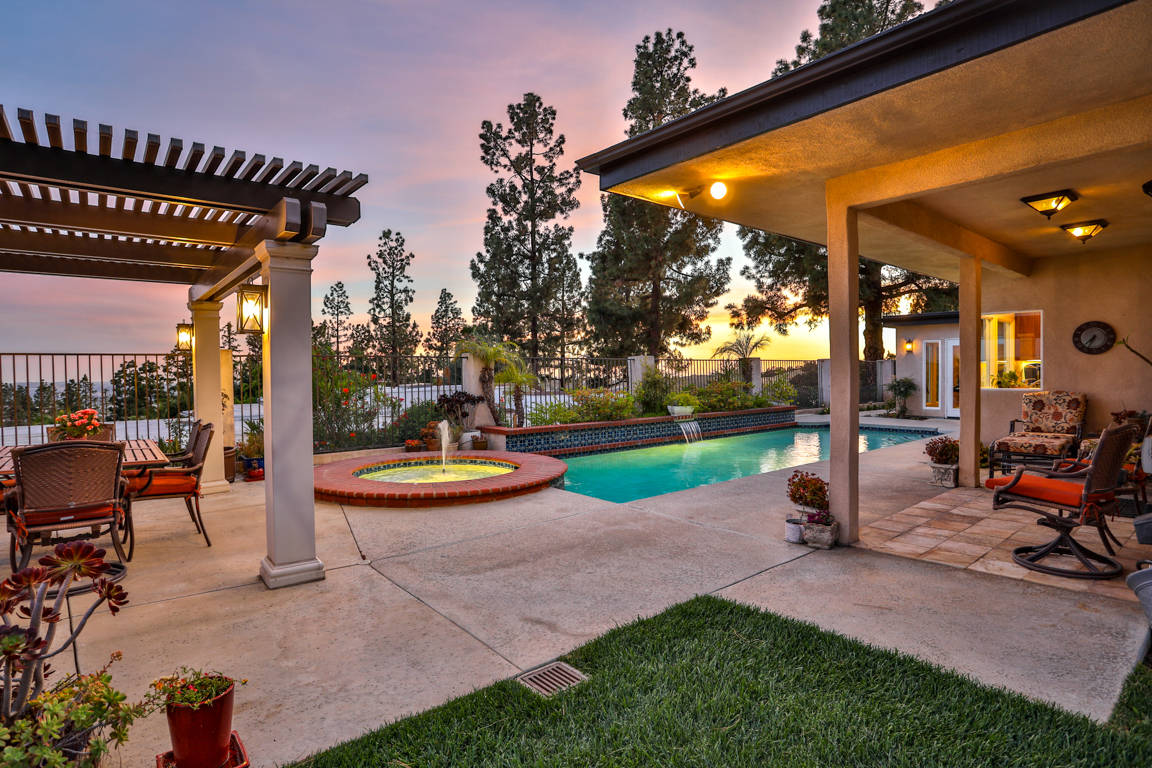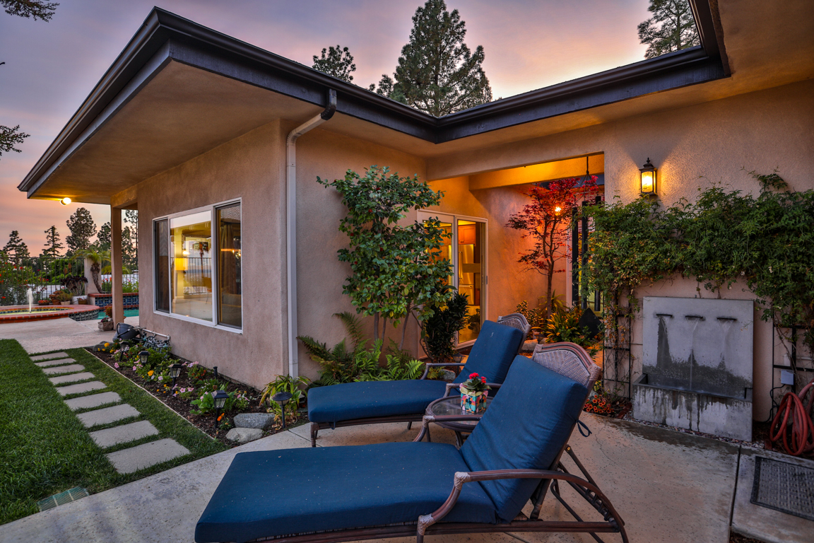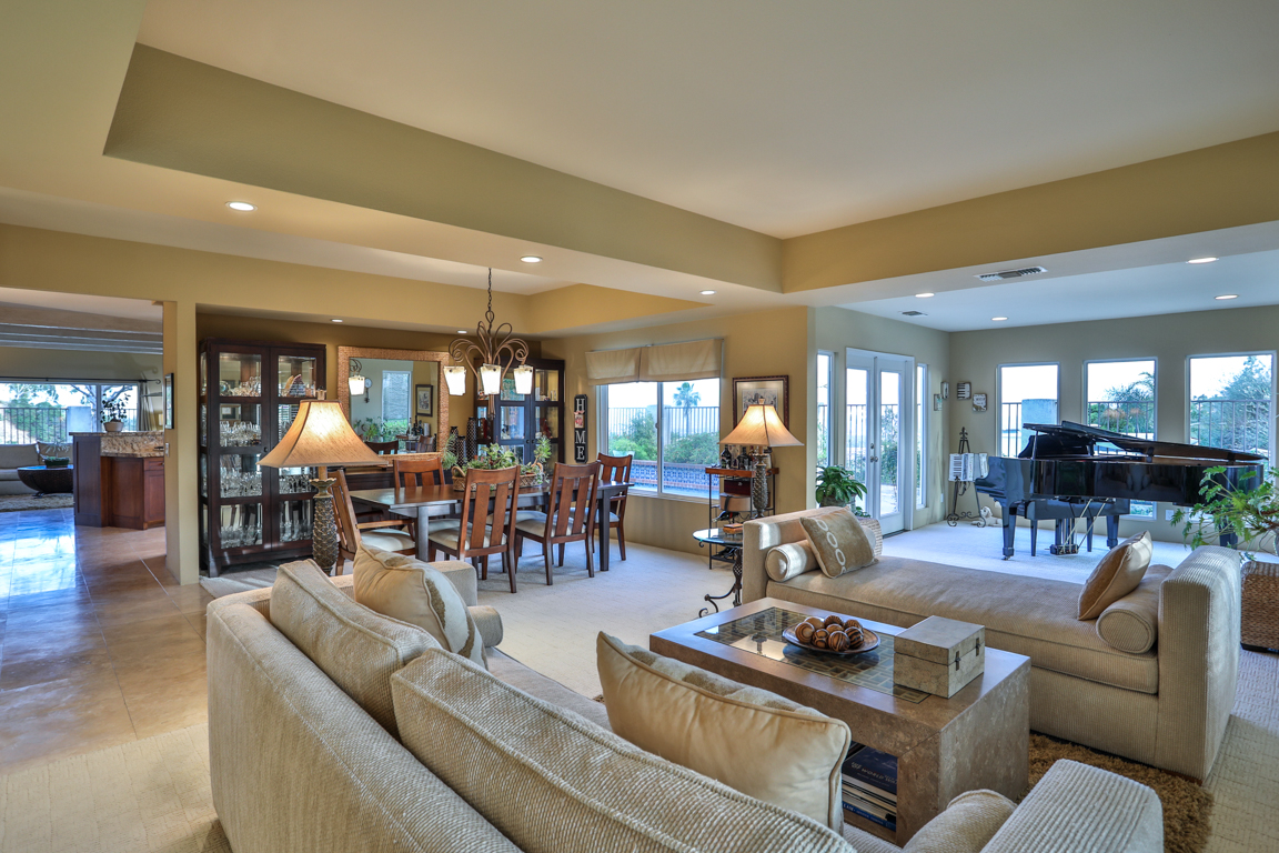 Custom built by Doug W. Henderson, a well-designed open floor plan offering walls of glass that enjoy an abundance of natural light and two impressive visual fireplaces. Professionally decorated with tasteful, timeless appointments throughout. Updated Chef's kitchen includes stone counters & opens to the family room. Dual paned windows and doors. Perfectly sited locale offering picturesque unobstructed valley, twinkling city lights, sunsets, & hillside mountain vistas. Sparkling pool & spa with impressive fountain water features, in a tranquil setting. A home truly perfect for entertaining and comfortable family living. An achievement in contemporary living in a one-of-a-kind trophy location.