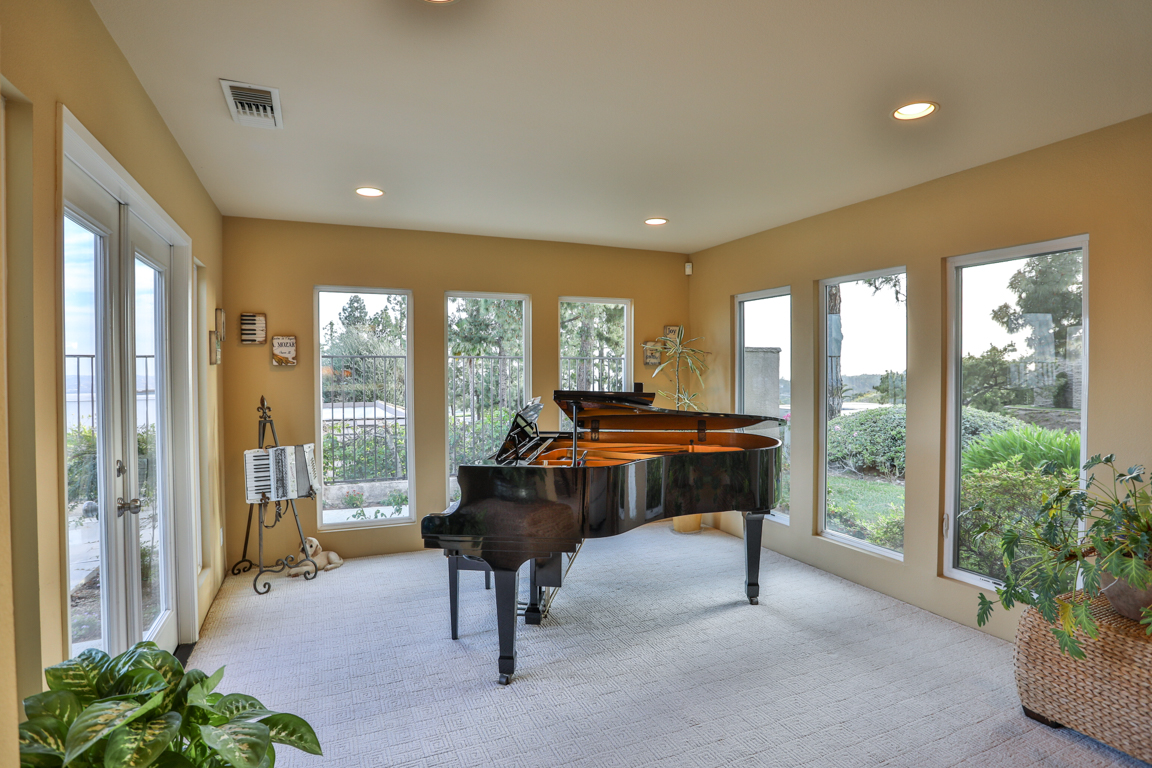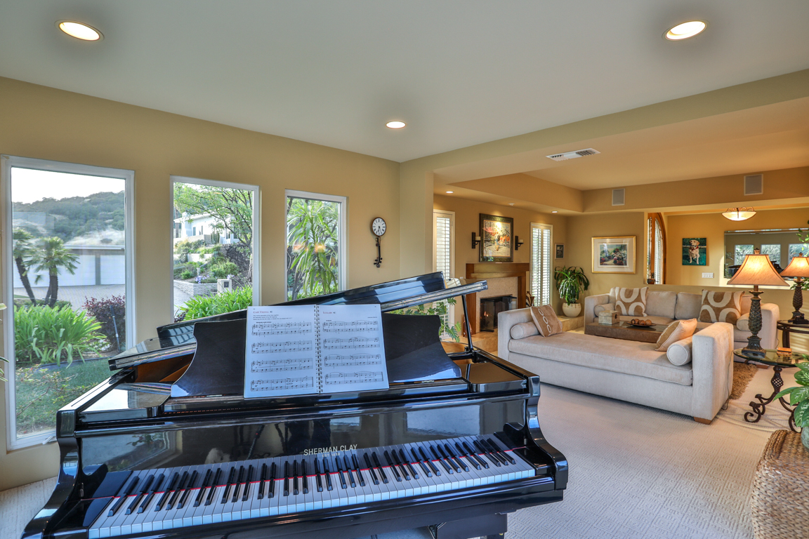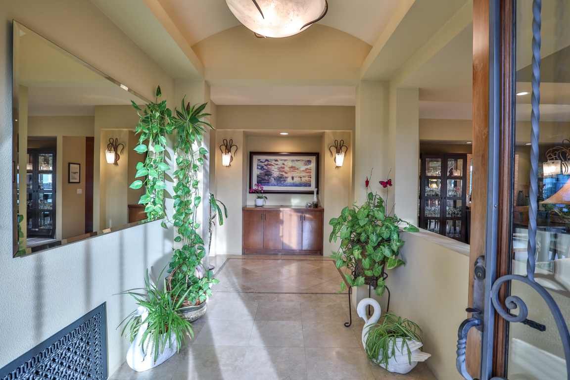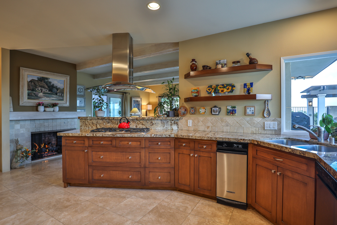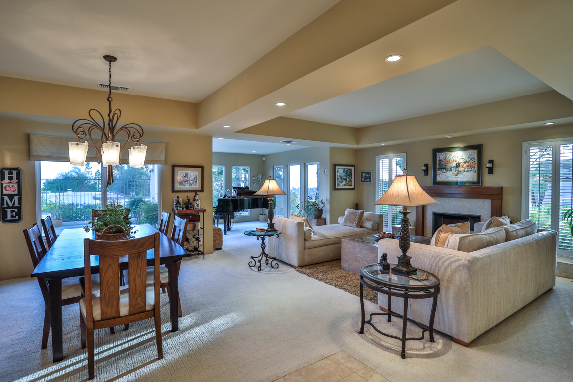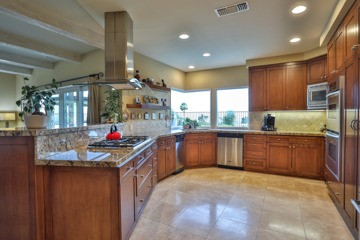 Custom built by Doug W. Henderson, a well-designed open floor plan offering walls of glass that enjoy an abundance of natural light and two impressive visual fireplaces. Professionally decorated with tasteful, timeless appointments throughout. Updated Chef's kitchen includes stone counters & opens to the family room. Dual paned windows and doors. Perfectly sited locale offering picturesque unobstructed valley, twinkling city lights, sunsets, & hillside mountain vistas. Sparkling pool & spa with impressive fountain water features, in a tranquil setting. A home truly perfect for entertaining and comfortable family living. An achievement in contemporary living in a one-of-a-kind trophy location.