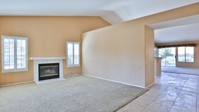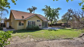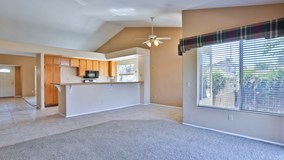 HARD TO FIND SINGLE STORY IN ORANGECREST! CUSTOM FRONT DOOR WITH WINDOW, BAY WINDOW IN LIVING ROOM WITH PLANTATION SHUTTERS, FIREPLACE AND VAULTED CEILINGS. LARGE KITCHEN WITH STAINLESS APPLIANCES , EXTRA LARGE BREAKFAST BAR WITH ROOM FOR 5 BARSTOOLS, UPGRADED CARPET, TILE AND CEILING FANS. DROUGHT TOLERANT LANDSCAPE, COLORED CONCRETE WITH SEATING WALL. BACKYARD HAS FRUIT TREES AND ROOM FOR A POOL