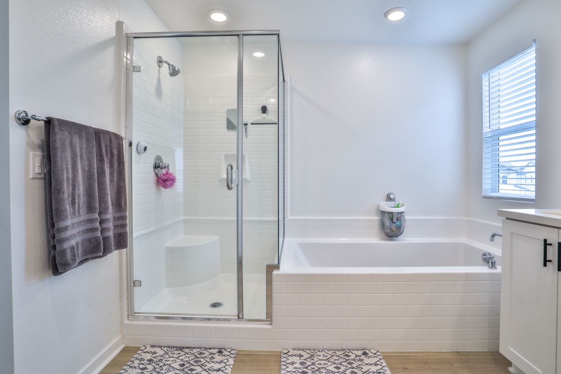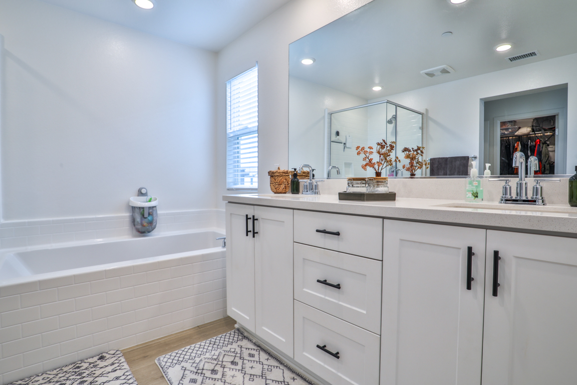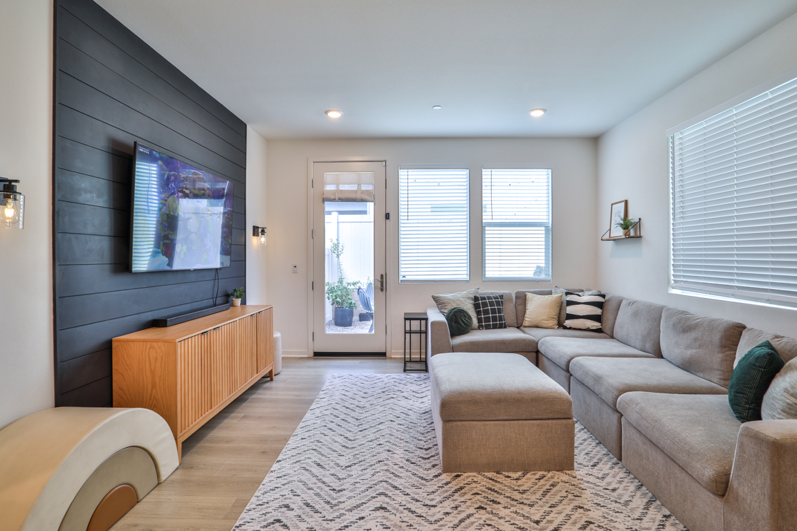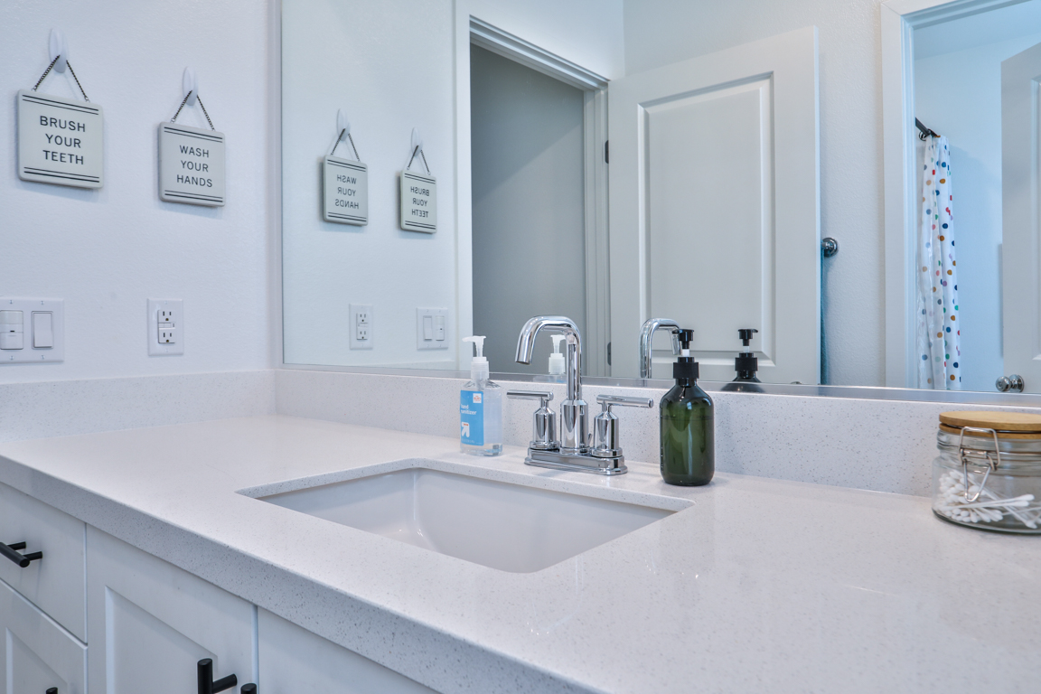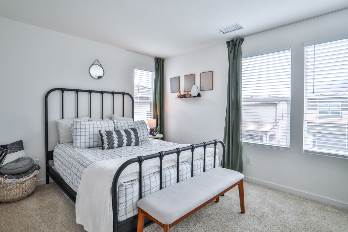 Epic price reduction! This Plan 2 Home at Serrano offers an exquisite floor plan, encompassing 2,059 square feet of thoughtfully designed living space. At the heart of the home, a spacious kitchen seamlessly flows into the dining and gathering rooms, creating an ideal space for both daily living and entertaining. The large kitchen island serves as a perfect centerpiece for hosting guests. A well-positioned guest bedroom and bath on the main level provide privacy and convenience. Upstairs, the private owner's suite offers a tranquil retreat, complemented by a luxurious bathroom featuring dual vanities, a soaking tub, a separate shower, and a generous walk-in closet. The second level also boasts two additional bedrooms that share a full bath, along with a versatile loft for extra living space. Designed with comfort in mind, this home includes high-end upgrades such as quartz countertops and wood laminate flooring. Taylor Morrison’s signature craftsmanship is evident in the soaring ceilings, expansive floor plan, designer paint, and modern exterior. The quaint rear yard is the perfect spot to relax, and residents can enjoy the community pool and spa for ultimate leisure and relaxation.