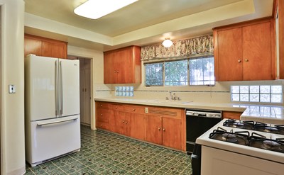 Don't miss this glorious vintage home in Los Feliz. Most of the original details can be found in this sprawling single story. The large living room is accented by the marble fireplace and floor to ceiling front windows. The huge dining room is just off the kitchen across from the rounded hall way wall. Blond cabinetry with 1950"s details can be found in the kitchen and breakfast nook area. Plus you have a coveted elevator that leads to the oversized two car garage below. The faintly room has custom paneling and builtin shelves plus a walk-in wet bar. The master suite offers a large closet/dressing area and access to the back yard. The master bathroom has a separate shower, bathtub and bidet. There is a third bedroom/office/nursery with direct access to the master bedroom. The terraced backyard has a covered patio and has room for a pool. There is central heat and air conditioning too.