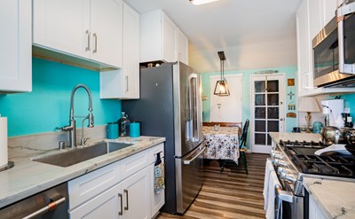 Check out this move-in ready gem! You’ll love cooking great meals in the completely remodeled kitchen with quartzite counters, new cabinets, soft-close drawers, a double-oven, and matching stainless-steel appliances. For added safety, the major kitchen appliances each have dedicated electrical circuits. The recently installed, split-system heating and cooling system along with the ceiling fans will keep you comfortable year-round. Each room has individual temperature controls. It’s perfect for people who have different temperature preferences, and it saves money by only heating or cooling the rooms you are using. The vinyl-plank flooring throughout is attractive, durable, waterproof, and easy to clean. Updated lighting in the kitchen, dining, and bathroom creates a warm and modern feel. For peace of mind, the house was re-piped with a combination of PEX and copper a few years ago. The covered patio is perfect for grilling and enjoying warm summer evenings. The entire interior was recently repainted too. Aluminum siding on most of the exterior adds character and reduces maintenance. Two Tuff Sheds offer tons of storage space and other options. The larger one could be used as a studio, home gym, or a second home office. Enjoy grapes and strawberries grown in your own backyard. The large oak tree provides lovely shade, and the October maple in the front adds a splash of extra color in the fall. The low-maintenance, concrete driveway can accommodate three cars side-by-side and two more in tandem, for five cars total. This location makes life convenient. With just a few minutes’ drive, you can see a movie, get groceries, deliver a package to the post office, dine at a variety of restaurants, relax and play at Hollenbeck Park, and even get home improvement supplies from Home Depot or Lowe’s. On top of that, Merwin Elementary School, Las Palmas Middle School, and Northview High School are all less than a mile away. Bonus! The house is priced based on 968 SF of permitted living space, but there is an unpermitted addition currently being used as an office that’s ±968 SF of permitted living space, but there is an unpermitted addition currently being used as an office that’s ±160 SF, for a total of ±1,128 SF. Be sure to check out the video and 3D tour, and welcome to a great home for a great life!