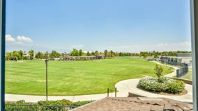 Super upgraded end unit townhome with granite countertop, stainless appliances and 180 panoramic park views from all 3 bedrooms. 2-car attached garage with a driveway for 2 more cars. Steps to park, County library and club house with access to 24-hour fitness center, pool, spas, kiddy pool, BBQ area, tennis courts, playground, theater, ball room, billiard and ping pong room. Beautiful gazebo porch welcomes you into this lovely home. Living room with a ceiling fan. Dining room opens to the living room forming a large open space. Kitchen with granite countertop and upscale stainless appliances. Guest bathroom with a pedestal sink and upgraded mirror. Laundry room downstairs. Going to the 2nd floor with master suite and other 1Br/1Ba. Luxurious master suite overlooks the enchanted park. Master with gorgeous 3-tone paint and elegant chair rail. Master bathroom with dual sinks, granite sink tops, rich cabinetry, shower area, toilet room and a walk-in closet. Other bedroom with a walk-in closet and nice unobstructed green belt view. Hallway bath with granite sink top and elegant frameless shower door. Going to the 3rd floor to 1 more bedroom. 3rd floor attic bedroom with a walk-in closet, desk alcove and view of the park and mountain.
