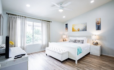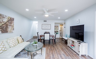 Mature palms and pines greet you along the way to this turnkey condo with a gate out front for added security. Once inside, you’ll love the newer laminate flooring, the abundant natural light, and the dimmable recessed lights throughout. The upgraded kitchen features granite counters, tile backsplash, custom ceiling fan, and newer stainless-steel appliances. Imagine the memories you can make in the large living room with great flow to the deck through the sliding glass door. Direct access to the garage makes loading and unloading convenient. This home is highly accessible for those with mobility challenges, with a bedroom and 3/4 bathroom downstairs, no steps along the entry path from the garage through the front door, and no steps downstairs. Vaulted ceilings give the already large primary bedroom an even more spacious feel, enhanced with mirrored wardrobe doors and a private, en-suite bathroom that's fully remodeled. The other two bathrooms are also fully remodeled, and having three of them means less waiting for the shower to be available. Central air and heat combined with newer ceiling fans will keep you comfortable in all seasons. The vinyl-fenced, private back yard features a refinished deck and a lot more of your own outdoor space than many other condos in the area. It’s perfect for hanging out, gardening, grilling, or keeping pets. You’ll enjoy the fruit from your own white peach, yellow peach, and mandarin orange trees. Enjoy peace of mind with a new roof installed in May of 2023. Cool off on hot summer days in the community pool. Host a party in the community picnic area. Shoot some hoops on the sport court. Two guest parking areas are located conveniently nearby. Save money with low utility rates from Azusa Light and Water compared to Edison. Want access to Los Angeles without living in Los Angeles? The Metro Gold Line’s Citrus Station is just around the corner. Sierra Palms is located less than 1/2 mile from Azusa Pacific University and Citrus College. The Citrus Crossing center is just minutes away with shopping, restaurants, and a movie theater. Enjoy a bike ride on the nearby San Gabriel River trail, or play a round of Frisbee golf at Northside Park. Don’t forget to check out the 3D tour. Welcome to a great home for a great life!