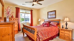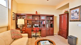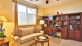 Outstanding almost new Invitational 3 model located in the beautiful Four Seasons 55+ community a fully gated 24/7 hr security surrounded by Hemet Golf Course and hills. This home has a terrific open floor plan, great room has vaulted ceilings custom mantle on fireplace built in TV and bookcase cabinet decorative custom stone wall. Large open Dining area. 2 bedroom 2 bath plus large office/den or ? amenities abound some which include custom window coverings, 18" tile floors and laminate wood floors, ceiling fans, kitchen has granite counters with full backsplash , stainless steel appliances, cherry wood cabinets, reverse osmosis in kitchen for great drinking water, also includes a water softener . Out side is a full length patio with lighting and fans and fruit trees. Plus there is NO MELLO ROOS on this home. make this a must see call today.