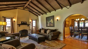 Known as the Moxley Abernethy House, this circa 1928 Spanish Revival style home is an exemplary representation of the style. Inspired by the architecture of Spain, rich stylistic elements include elaborate tile accents, wrought iron grillwork and hardware, half rounded arches, dramatic beamed living room ceiling, casement windows, numerous original sconces, terracotta roof tiles. The covered veranda extends the living space, and was beautifully designed with intricately patterned tilework and built-in seating, a lovely gathering spot for family celebrations or larger-scale entertaining. The exquisitely remodeled kitchen offers granite counters, tumbled marble backsplash, and stainless steel appliances including 5-burner gas range, built-in microwave, refrigerator and dishwasher. Enchanting rear gardens feature ornate fountain and fruit trees. Located in the desirable Brigden Ranch community, this one-of-a-kind residence is not to be missed.