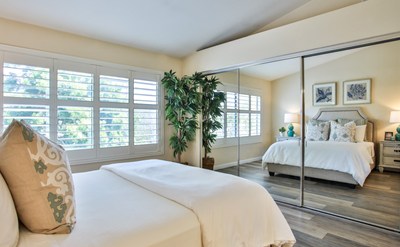 FRESH and BEAUTIFUL home in the heart of Aliso Viejo! Tastefully updated with a sophisticated kitchen featuring neutral toned shaker style cabinets with soft-close feature, high quality organizer inserts, granite counters, and stainless steel appliances. The open floor plan has tile flooring on the first level, beautiful engineered wood floors in a light grey-beige tone on the 2nd level and the stairs for an easy low maintenance lifestyle. All three bedrooms are on the second level, the Master has a large mirrored wardrobe, dual vanities and an updated walk-in shower. The second bedroom is large and features plenty of sun-lit windows. The third bedroom can be used as an office/den or bedroom, currently there are built-ins on one wall without a closet. The yard is low maintenance with pavers and has plenty of space for a BBQ and dining area, a back gate leads to the green belt area just behind the property which is perfect for pets. This prime location is within walking distance to Town Center with Theaters, restaurants, shopping and groceries. Enjoy being close to the community pool, Springdale park, Woodfield park with a great playground and picnic areas for entertaining. Complex was re-piped with PEX piping a few years ago. This home is on a quiet corner without heavy traffic in front, great for kids and plenty of guest parking.