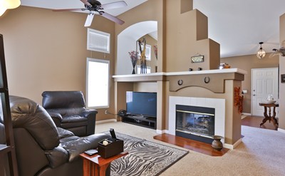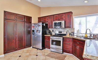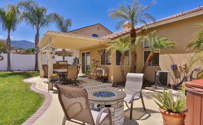 Single story 3 bed, 2 bath home in Mountain Gate w/3 car garage. This move-in ready homes features beautiful landscaping, semi-private front patio, & newer exterior paint. Step into the entry way that features laminate flooring to the formal living room w/2 way fireplace, vaulted ceilings, & open floor plan opening to the dining room. The dining room is spacious & conveniently located just off the kitchen. The family room features a fireplace, high ceilings, & ceiling fan. The kitchen is gorgeous w/details such as beautiful rich cabinets w/a huge pantry that is accented by the tile flooring w/custom diamond tile inlays. Granite countertops, recessed lighting, & tiled backsplash compliment the kitchen which opens to an informal eating area w/direct access to the private backyard. The master bedroom also has vaulted ceilings, lighted ceiling fan, large mirrored closet doors that reflect the light from the windows & an inset wall that provides more space. The master bath has dual sinks, separate shower & tub, toilet closet, & 2nd closet. The remaining 2 bedrooms are spacious & feature laminate flooring, wainscoting, custom paint, & ceiling fans & share the 2nd bath. The indoor laundry room features cabinets for storage. The large backyard is private w/brick inlayed covered patio, private spa, lush landscaping w/raised flower beds, vinyl fences & peek-a-boo views of the Cleveland National Forest. Located walking distance to hiking trails, schools, shopping & fwy access.