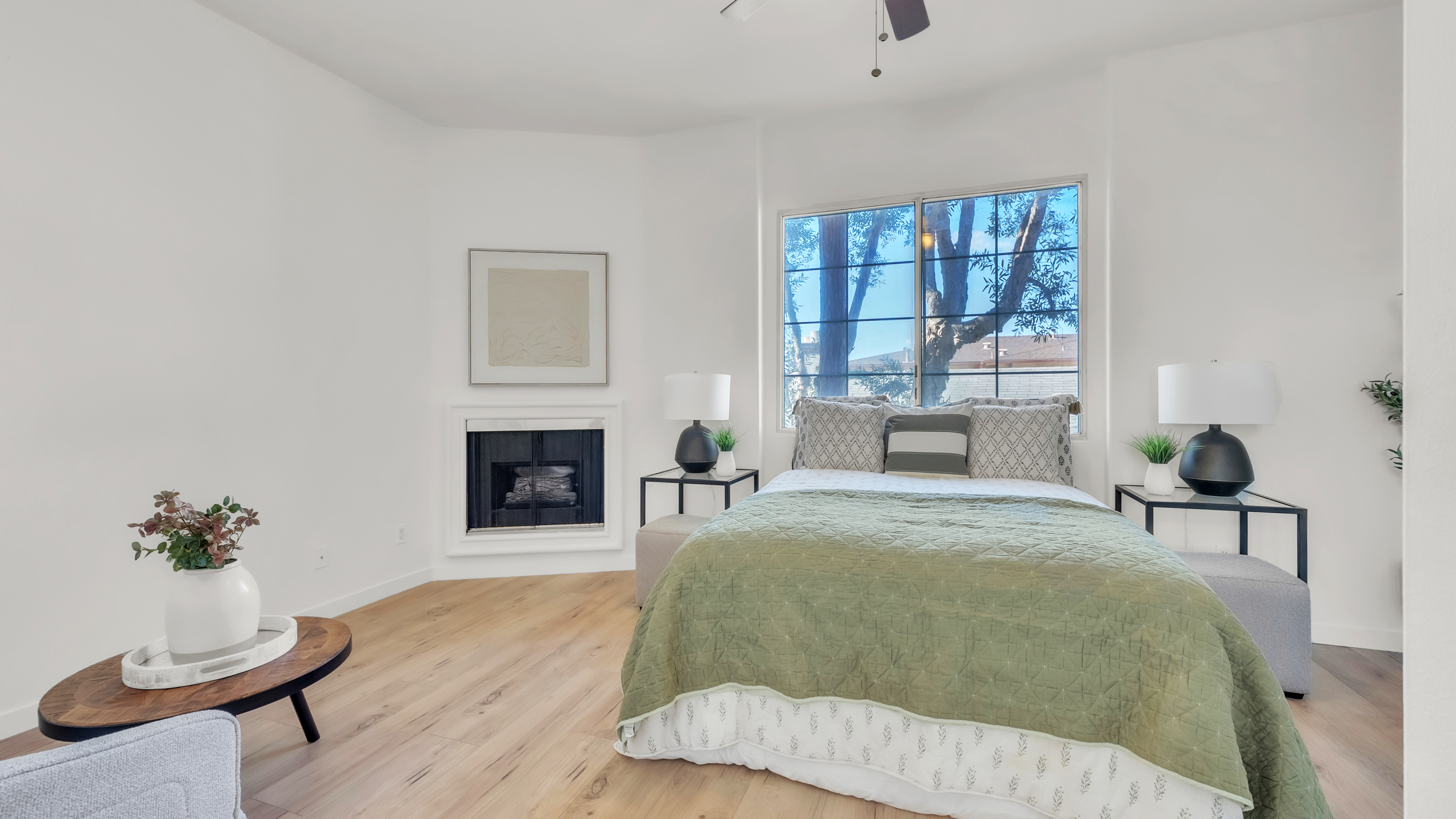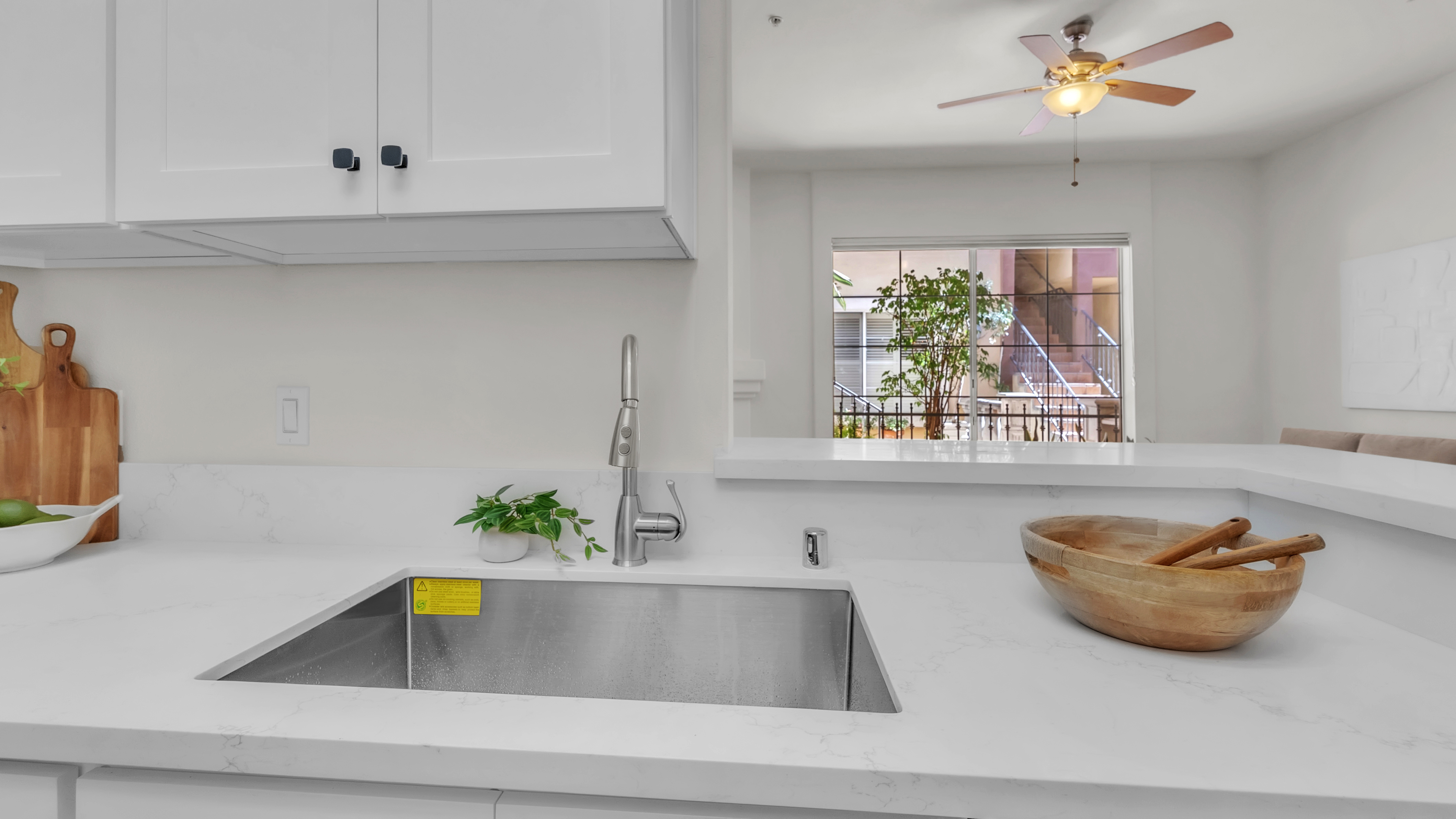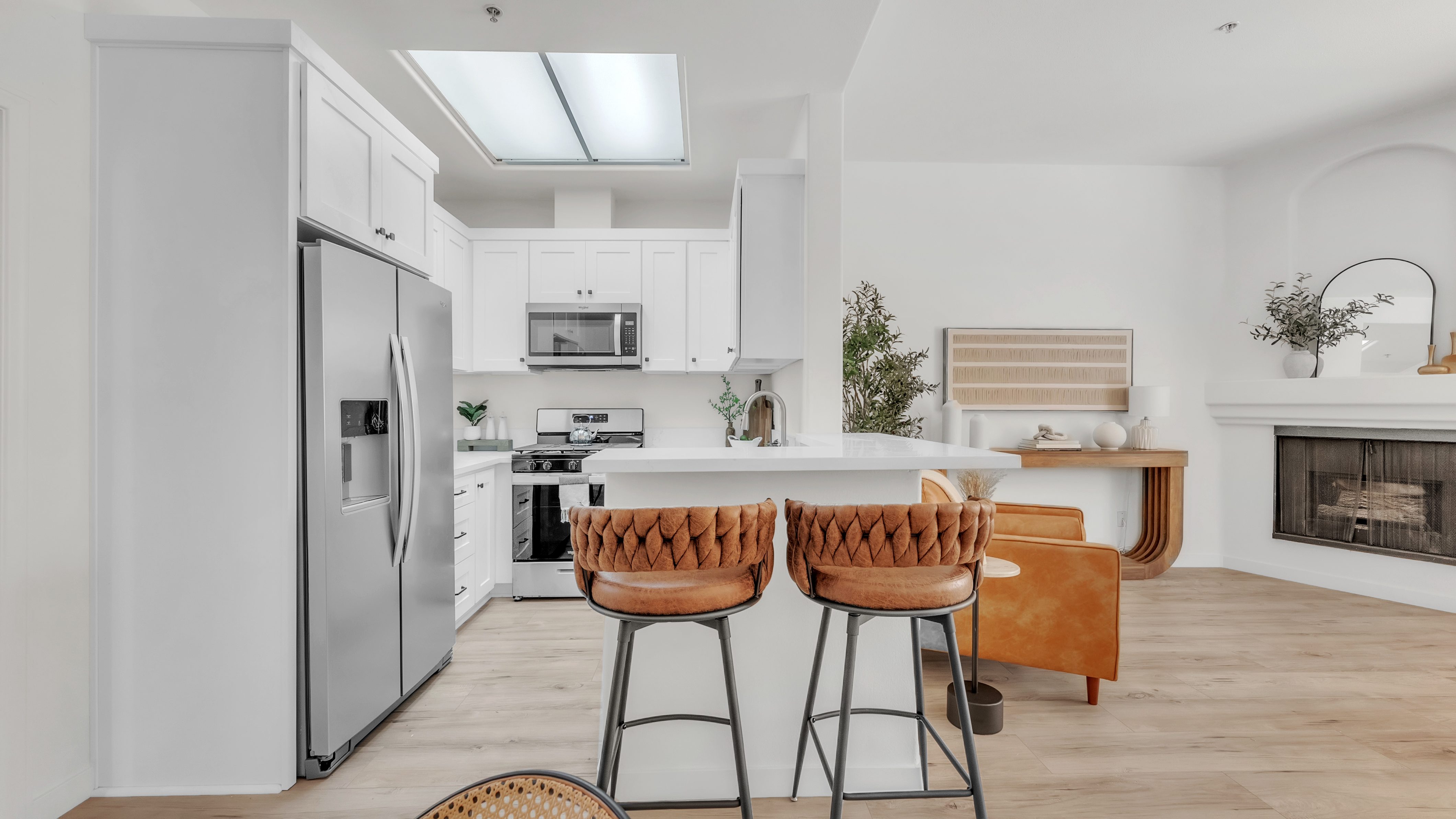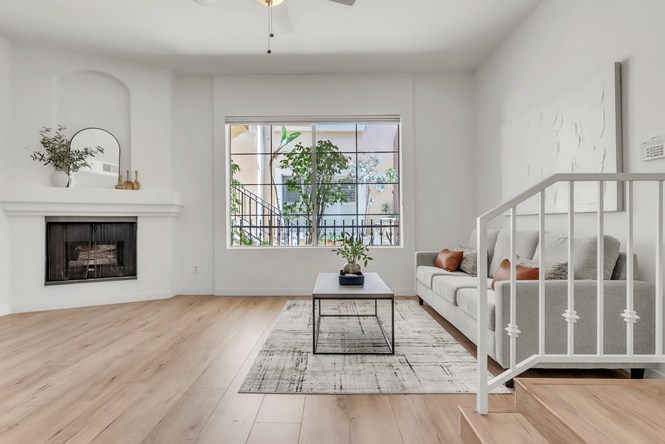 Westside Living at its best in this Fully Remodeled Westchester condo. This unit is open and bright with natural light flowing through the open courtyard through the huge picture window, filling up the spacious and open living room. The living room also features a comforting fireplace and 10' ceilings. The kitchen is beautiful with brand new custom-made white shaker cabinets, paired with black hardware and quartz countertops with an overhang for additional bar stool seating. Just off the kitchen is a dining area and a pantry closet. To top it off, there are brand new Whirlpool stainless steel appliances that will transfer to the lucky new buyer. The primary suite has vaulted ceilings, 3 separate closets, a sitting area next to the fireplace and a fully remodeled en suite bathroom. The 2nd bedroom is spacious with tree top views out of the window. In the hall is a laundry closet with hookups for a stackable washer and dryer. This home also has central heating, A/C, and double paned windows. You also receive 2 tandem parking spaces in the gated secured parking garage. HOA Amenities include a fitness room and Jacuzzi. Location is great as well with easy access to the 405 FWY, less than 5 minutes to the Westfield Mall inCulver City, 10 minutes from LAX, 10 minutes from the Howard Hughes Center and 15 minutes to the Beaches!