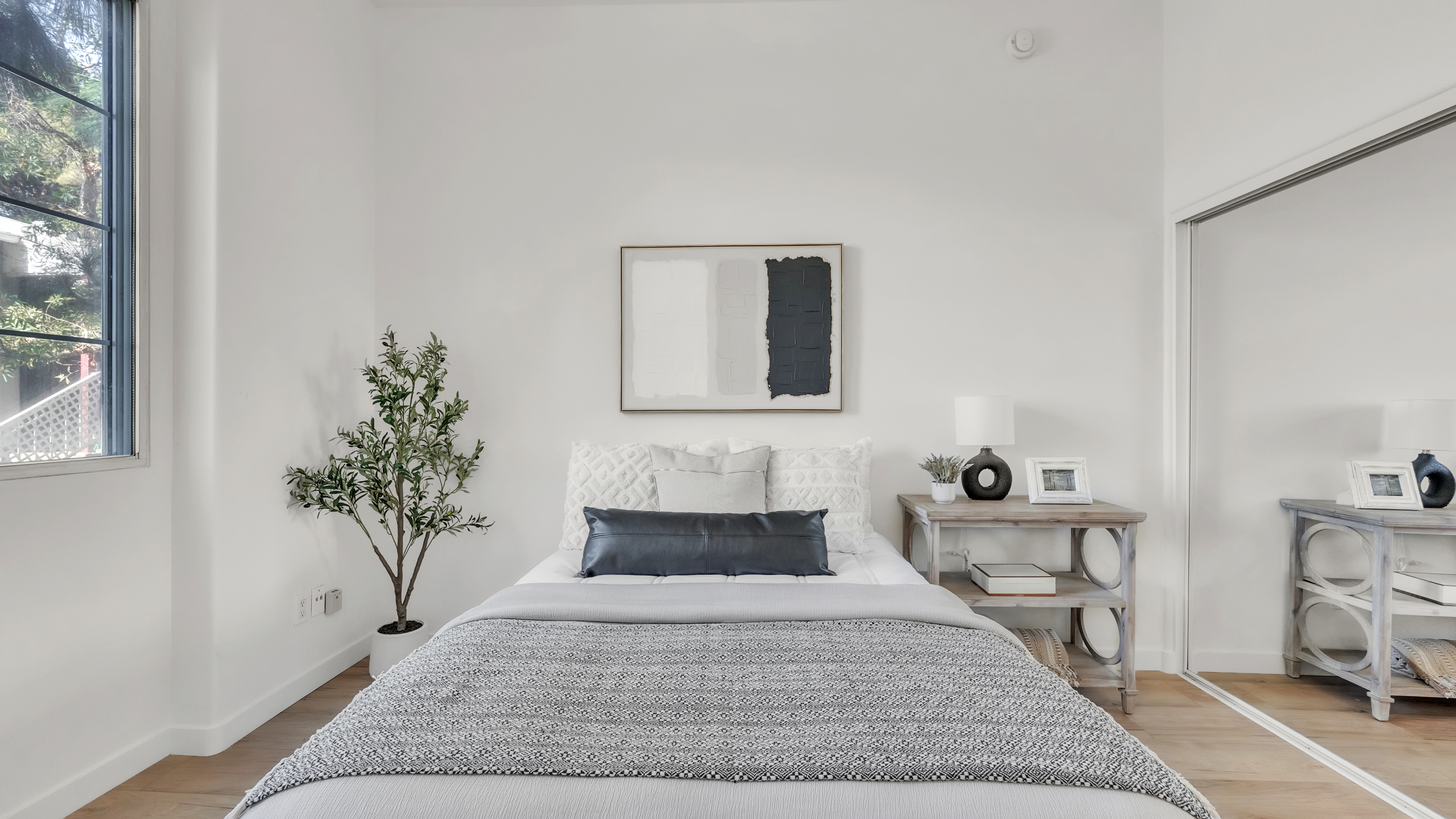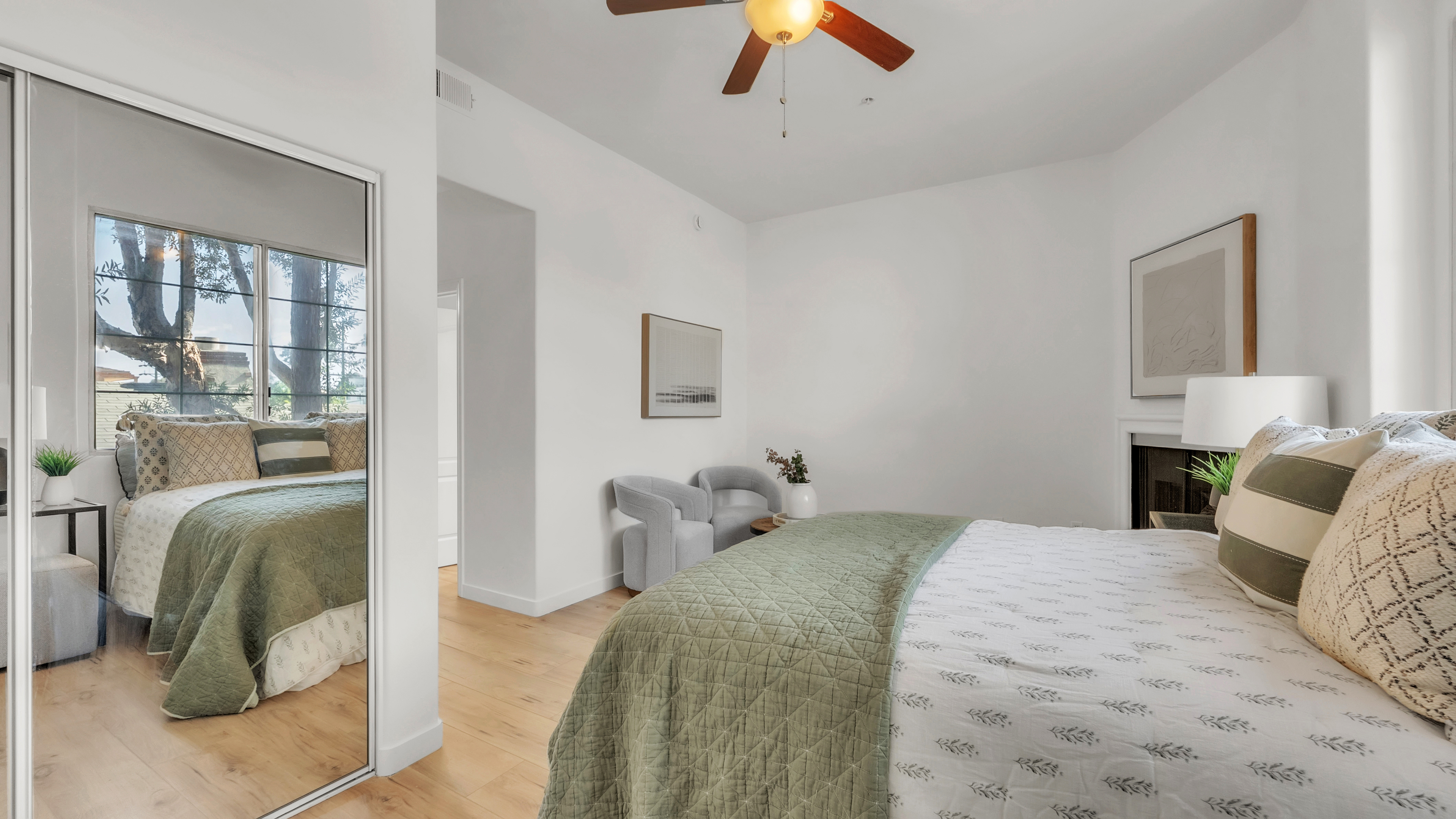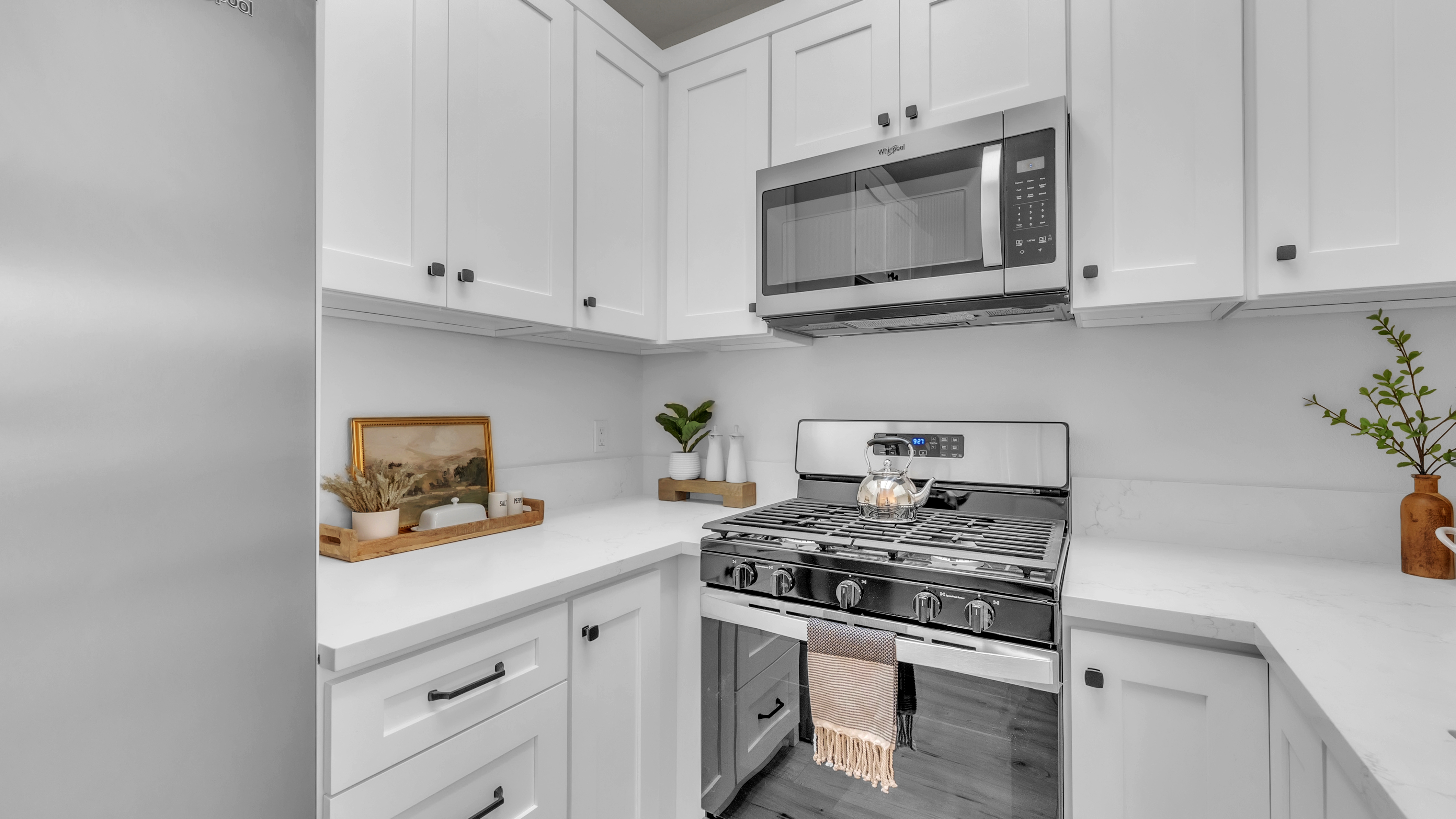 Westside Living at its best in this Fully Remodeled Westchester condo. This unit is open and bright with natural light flowing through the open courtyard through the huge picture window, filling up the spacious and open living room. The living room also features a comforting fireplace and 10' ceilings. The kitchen is beautiful with brand new custom-made white shaker cabinets, paired with black hardware and quartz countertops with an overhang for additional bar stool seating. Just off the kitchen is a dining area and a pantry closet. To top it off, there are brand new Whirlpool stainless steel appliances that will transfer to the lucky new buyer. The primary suite has vaulted ceilings, 3 separate closets, a sitting area next to the fireplace and a fully remodeled en suite bathroom. The 2nd bedroom is spacious with tree top views out of the window. In the hall is a laundry closet with hookups for a stackable washer and dryer. This home also has central heating, A/C, and double paned windows. You also receive 2 tandem parking spaces in the gated secured parking garage. HOA Amenities include a fitness room and Jacuzzi. Location is great as well with easy access to the 405 FWY, less than 5 minutes to the Westfield Mall inCulver City, 10 minutes from LAX, 10 minutes from the Howard Hughes Center and 15 minutes to the Beaches!