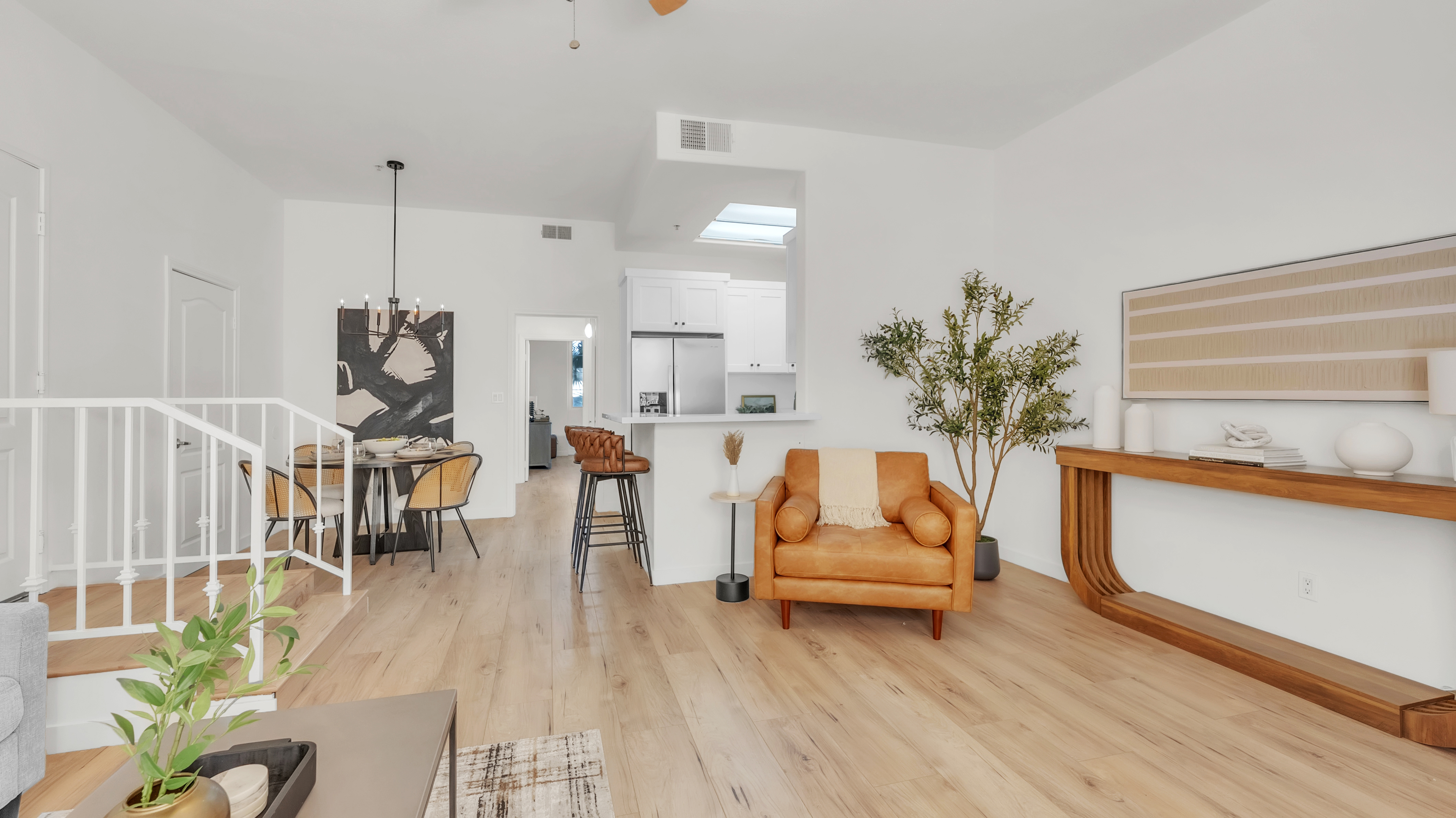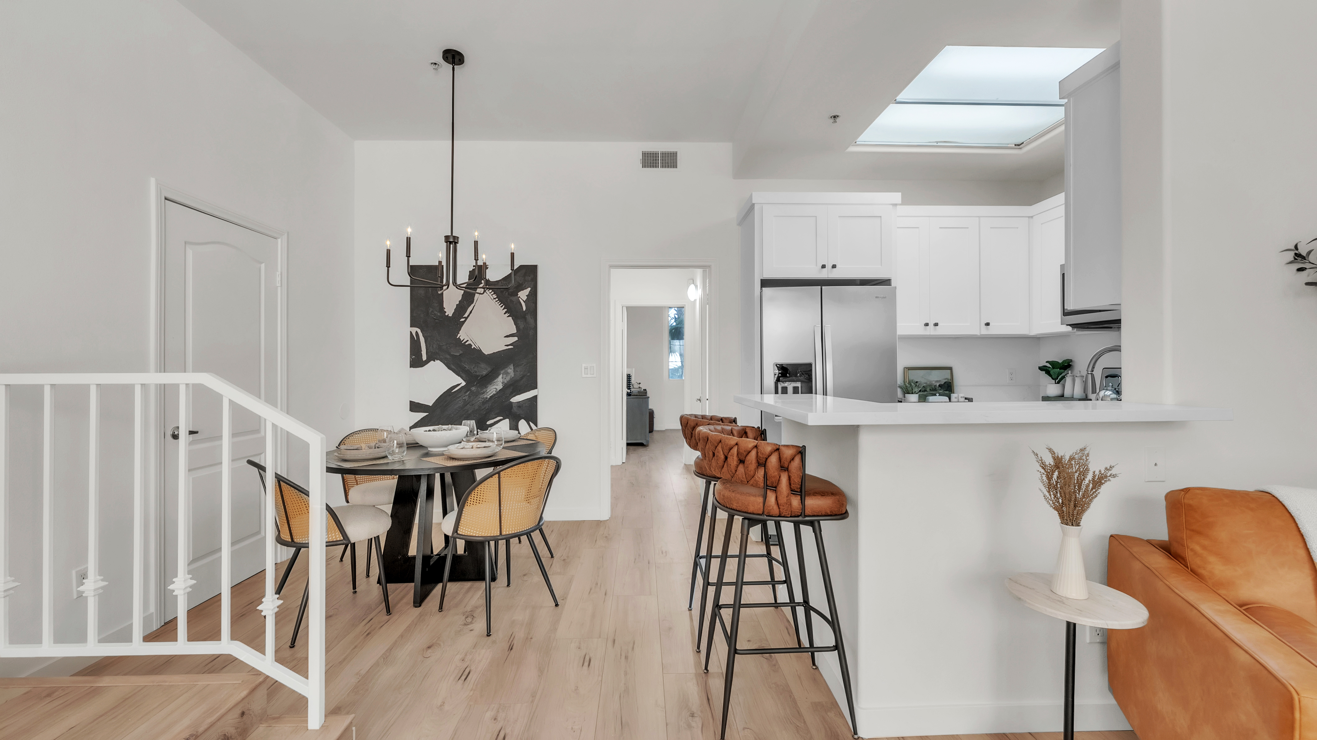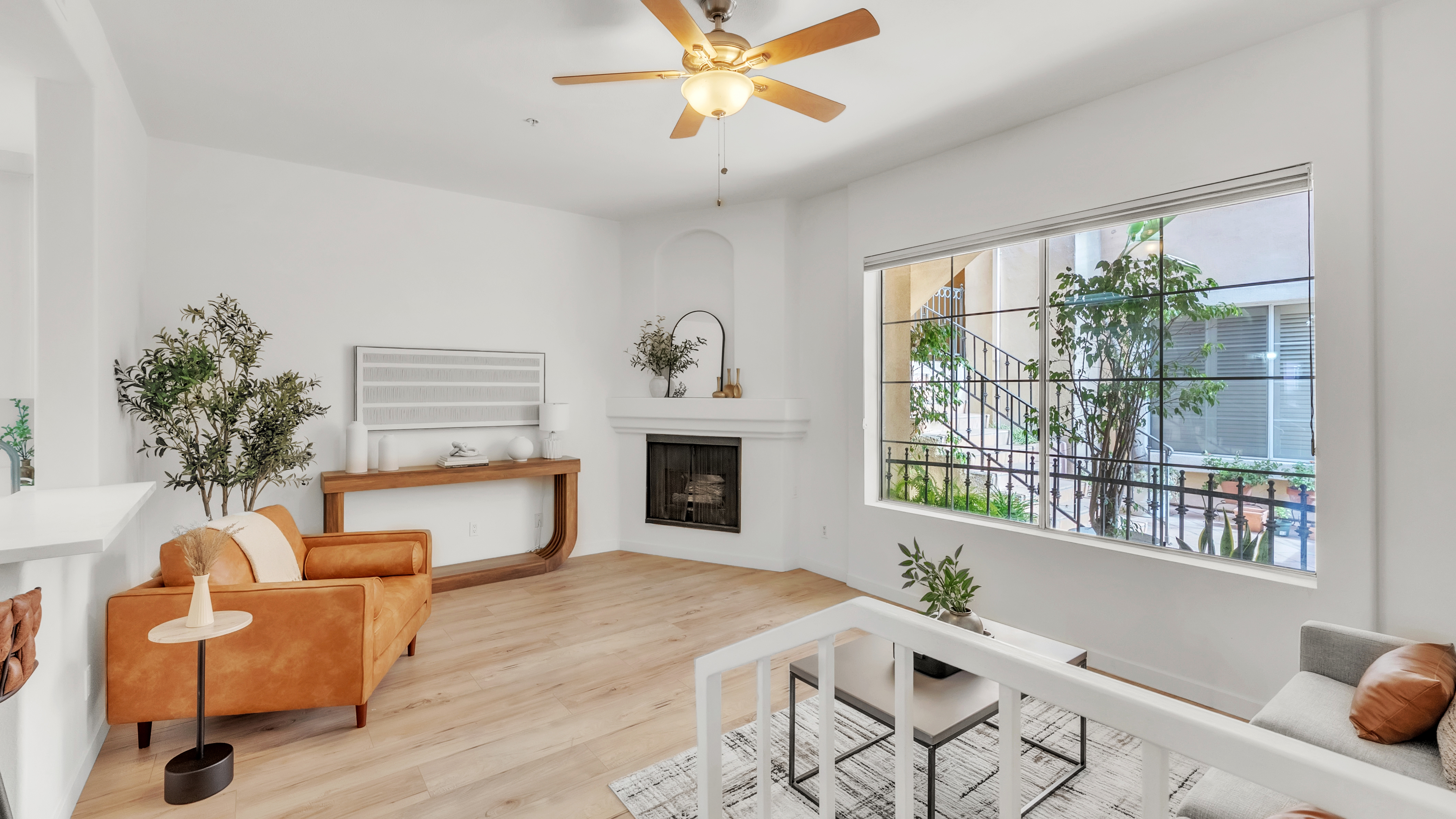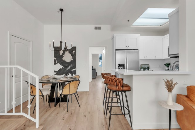 Westside Living at its best in this Fully Remodeled Westchester condo. This unit is open and bright with natural light flowing through the open courtyard through the huge picture window, filling up the spacious and open living room. The living room also features a comforting fireplace and 10' ceilings. The kitchen is beautiful with brand new custom-made white shaker cabinets, paired with black hardware and quartz countertops with an overhang for additional bar stool seating. Just off the kitche...