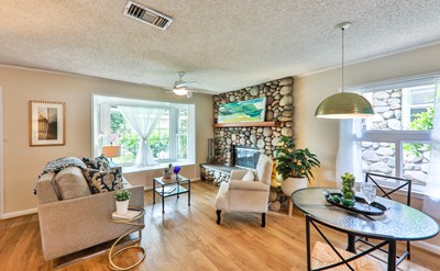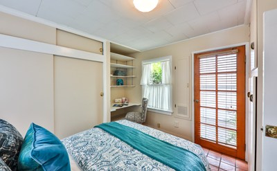 Nestled under a giant fig tree, sits a charming stone cottage. Enjoy the Summer breeze while you relax on the front large front porch. Enter through the bright red dutch door, and you'll find a stone fireplace and a nice sized living room and dining area. There are two charming bedrooms and a full bath. Surprisingly there is a nice sized kitchen with plenty of room for a table and chairs. If you need extra space, then the detached office with a 3/4 bath will be perfect for a workspace, guest unit, or even a rental. If you love to garden, then the back yard is the ideal setting. A pretty slate stone patio draped in blooming wisteria. Two raised beds are already blooming and sprouting with seasonal veggies.