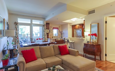 Welcome to this full service, luxury residence at Granite Park Place. Offering private concierge, valet parking services, club room with catering kitchen, fitness center, heated pool and spa, outdoor gas fireplace and two Viking gas grills to cook poolside, it's all just steps from the unit. Located in Pasadena's highly desirable South Lake District, this two story, spacious studio style unit has two private entrances. One located directly off San Pasqual St. and the other through the main lobby entrance for private guests. Enjoy evening dining and morning coffee on the spacious second floor balcony with north facing mountain views. The first floor boasts french doors out to a very spacious private patio, surrounded by foliage and flowers. Cook in the chef's dream kitchen with beautiful Viking and LG appliances, pearl quartz countertops, solid wood cabinets and hardwood floors by Kahrs. Both elegant baths offer spa like tile and Kohler fixtures.