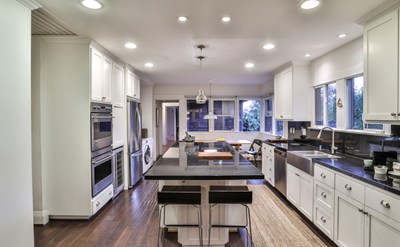 Renovated & Redesigned floor plan in 2007 by Wheeler & Wheeler Architects, A.I.A. Four sizable potential bedrooms & three baths (one added & two remodeled). Open living room & dining room with fireplace plus striking wood floors and large front picture window. Impressive renovated kitchen featuring center cooking island, granite countertops, custom cabinets & upgraded appliances / Breakfast nook with large corner window. Private office room with built-in cabinets & desk. Bryant Deluxe Quiet high Efficiency Evolution Zone Control, Air purifier and Cooling System with Prefect Air Cleaner, newer ducts and U/V light system. Newly installed upgraded wireless high tech security system on the property. Other quality improvements include a newer roof tune up, upgraded electrical, original wood floors, whole house fan, tankless water heater, smooth ceilings & recessed lighting. Small cellar basement.