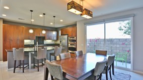 Situated on a desirable corner lot within the award-winning, master-planned, golf community of Escena, 4938 Herzog Way displays a great deal of 'pride in ownership.' Built in 2012, this Lennar-constructed Motiff model home belongs to the final phase of construction on the east side of the community. The property has unobstructed views looking east across the desert due to the utility easement located immediately on the other side of the street and views facing west of the San Jacinto Mountains from several locations on site. This modern property is meticulously maintained, energy efficient, fully sprinklered, and located within close walking distance to the community's clubhouse. The home also boasts 24x24 white ceramic tiles throughout, 6 outdoor patios, in-ground spa/pool combination, owned BOSCH alarm system, custom blinds, custom backsplash, custom lighting, ceiling fans, LED party lights, landscape upgrades, tankless hot water heater, pool deck jets, and newer HVAC system.