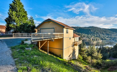 Why leave Cali when you can find it all right here at Lake Gregory. This home is nestled right in the foothills with only mountain and lake views. The peacefulness and abundance of wilderness surrounds you everywhere! Your affordable home features a smart garage & plenty of parking which takes you right into the living room and guest room/den/balcony with more of those gorgeous lake views. The sit in dining room is ready for entertaining just off the recently updated and remodeled kitchen. The spacious kitchen features tons of storage for all seasons and appliances that are made for the chef in mind. Other great features of the kitchen include, but not limited to, cherry cabinets made by Shenandoah. Right off the kitchen is a lovely additional utility room with additional refrigerator storage that walks you right out to the wrap around balcony with more of those breath taking views. The five bedrooms feature plenty of space with four bathrooms & plenty of space for everyone including the guests or an at home office. The master bedroom features an on-suite master bath. There is plenty of storage from the built in cabinets located in the attached garage! What you don't want to miss is the lush mountain space, with mountain views and breathtaking lake views and plenty of room to entertain! This sprawling and plush property is amazing with almost 13,000 sq ft of pristine land (TWO LOTS WITH ONE IN FRONT OF THE HOUSE SO VIEWS REMAIN UNOBSTRUCTED)! Make us an offer we can't refuse!