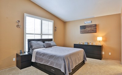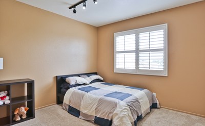 Beautiful 3 bed, 3 bath w/PAID OFF SOLAR in the Mountain Gate area of South Corona. This move-in ready home features eco-friendly & tech enabled features such as a PAID OFF solar system, Nest video doorbell & thermostat, Schlage smart front door lock, smart touch screen security system & solar production and home consumption monitoring. Other upgrades include plantation shutters throughout & brand new carpet. Classic Cali palm trees lead you to the front door & into the family room to high ceilings, beautiful flooring, fireplace w/modern tile accent & an open floor plan. Just off the living area is the formal dining room, w/the informal eating area & kitchen adjacent. The kitchen has beautiful rich colored cabinets, stainless steel hardware & appliances, goose-neck kitchen faucet, recessed lighting & low maintenance tile flooring as well as direct garage access. An updated guest half bath completes the downstairs space. Head upstairs to the master bedroom that features peek-a-boo views of the hills, high ceiling, walk in closet, lighted ceiling fan, & spacious entertainment niche. The master bathroom features dual sinks, shower & tub combo, toilet closet, as well as updated faucets, & lighting. The remaining 2 bedrooms are spacious w/large closets & share a full hall bathroom w/shower & tub combo. Conveniently located in the hallway upstairs is the laundry room. The backyard is spacious w/concrete patio, wide side yards & peek-a-boo views of the mountains & hills.