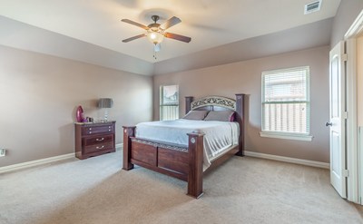 This pristine home is walking distance to the clubhouse, community pool, playground and private fishing pond! Open concept floor plan with tons of natural lighting & separate secondary bedrooms. The study is spacious enough to be a 4th bedroom or second living area. Custom stone border, lush landscaping, covered back patio, and updated appliances make this home perfectly move in ready! Master Bath features separate closets, large shower and a garden tub.