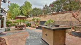Tucked away in a cul-de-sac in the Live Oak gated community, this home has been upgraded with no expense spared. You'll find an open formal living & dining room with large windows covered in custom taffeta curtains, vaulted ceilings, custom staircase & travertine flooring throughout the main level. The gourmet kitchen is a cooks delight with mahogany cabinetry, stainless steel appliances, spacious granite counter tops/backsplash, gas burning range, pantry, recessed lighting, breakfast bar & eat in area. The kitchen adjoins the family room creating the perfect space for entertaining friends & family. The family room offers a cozy fireplace & French doors to the backyard. Backyard has colored concrete, gas fire pit, water feature, built in BBQ w/burners/oven & refrigerator & sound system. The backyard is very private being surrounded by trees & shrubs with high walls & no neighbors behind. A guest bedroom, a full bathroom & a laundry room are located on the main level too. The master suite features a remodeled bathroom with dual sinks, custom cabinets, marble flooring & counter top, large walk in closet & separate tub & frame-less shower. Choice of Claremont/La Verne schools. HOA features 2 pools/spa & gated RV parking. Park w/ tennis & soccer field nearby!