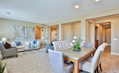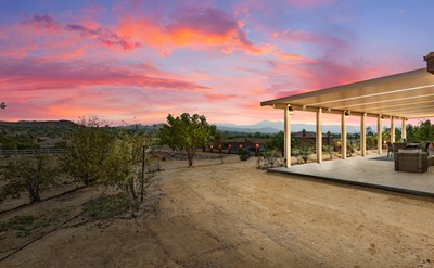 Live the good life! This carefully manicured single-story estate home is located in Mockingbird Canyon in the coveted Bridle Creek community. Perched on a desirable inside-tract, corner lot with 1.18 acres of land with serene mountain views off the back. Very private gated home with an automatic gate in the front and another gate on the side to access the backside of the property. The entire outer edge of the property is fenced with split-face block wall, iron fencing and extensive lighting. This home has over $220,000 spent in improvements. Finishes like newer luxury vinyl plank flooring, porcelain tile floors, ultra-plush carpeting and plantation shutters. Prepare to be surprised by how well-maintained the interior of the home is. Featuring 4 bedrooms (one is being used as an office) and 3.5 baths. Large living & dining room combo. The kitchen has upgraded newer LG stainless steel appliances, granite countertops, instant hot water dispenser, single basin stainless steel sink. The kitchen opens up to the breakfast nook and family room, ideal for large gatherings. 2 beautiful fireplaces with pre-cast hearths. All bathrooms feature granite counters. The master bathroom has a separate shower and jetted tub, dual sinks, walk-in closet that comes with a large safe and tech hub; while the master bedroom showcases beautiful wainscoting on the walls. Dual HVAC systems, ceiling fans throughout and a separate laundry room (with sink), that has an access slot from the master walk-in closet. Entertain beneath the low-maintenance alumawood patio cover that goes along the entire back-side of the home. Or stroll through the park-like grounds in the front or savor the wide variety of fruit trees. Tons of room for all your toys in the gated parking area in front, on left side of house on RV pad and also on the back-side of the lot. The 4 car garage has freshly coated floors. Homes like this rarely come on the market.