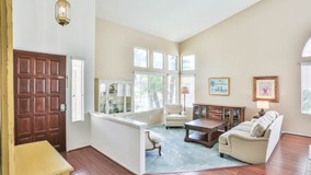 The pride of ownership shows. Beautiful mature landscaping. Entering onto wood floors you see Cathedral Ceilings, several windows with plenty of natural light creating a very open feel. To your left is a carpeted sunken living room with a open dining room just beyond. Ahead of you is a kitchen with a large island including a downdraft cooktop, double door pantry, and is open to the family room featuring a large wood burning fireplace. Out through the sliding glass doors you find a large private back yard with grass, mature trees, a hill that has a beautiful view, and a combination of wood and rod iron fencing. The spacious first floor Master Bedroom features a large sliding glass door, french door walk-in closet and double pocket doors leading to the Master Bath. This bathroom features double sinks, tile counters, tile floors, shower, lots of windows and spacious soaking tub with a great view of your private yard. A large laundry room with sink, cabinets and side exit. Up the curved stairway to your right you find a huge bedroom that would also make a great playroom. Down the hall to your left you find a shared bathroom with double sinks and a skylight. Three more bedrooms with large closets and garage with lots of storage round out a beautiful home.