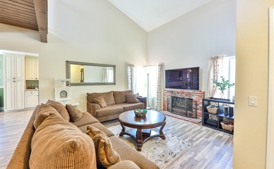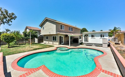 3 Bedroom + Loft home with POOL and RV PARKING! Step into the tiled entryway to the living room featuring newer wood laminate flooring, vaulted ceilings that open to the loft and a brick fireplace. The living room opens to the formal dining room located just off the kitchen. The kitchen is FULLY remodeled (approx. 5 yrs.) with granite countertops, soft close cabinets, stainless steel appliances, beautiful granite counter tops, under-mount sink & recessed lighting. The kitchen dining area features classic wainscoting & french doors to the backyard. The updated downstairs guest bath completes the 1st floor. The stairs & upstairs loft include BRAND NEW CARPET! Head upstairs to the large versatile open loft featuring vaulted ceiling & a lighted ceiling fan. The master bedrooms is spacious w/laminate flooring, lighted ceiling fan & large closet w/mirrored doors. The remaining 2 bedrooms have wood laminate flooring & classic window bench seats w/storage. The backyard is perfect for entertaining with in-ground pool & spa, covered patio offering lots of shade, & spacious grass area for kids young & old. Bonus 10x10 shed with porch is perfect for your very own she-shed, man cave, or children's playhouse! The backyard also features fruit trees, including lemon, guava & avocado. LOW Taxes and NO HOA!