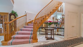 Boundless entertaining is the rule in this Warm & Inviting home from it's Private Atrium Entry to the stunning 2nd story Living Room with floor to ceiling windows, beautiful marble fireplace, adjacent wet bar and spacious Formal Dining Room. Completing the first floor level: A lovely 2nd Master Suite or Guest Quarters, a powder room and an en-suite bedroom or private office serenely tucked away off the marble entry! French doors open to a beautifully paneled Family Room with fireplace over looking the rear grounds and opening to the breakfast area and kitchen!