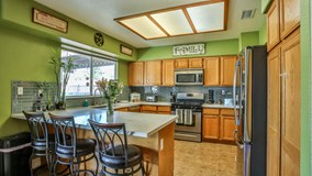 Gorgeous kitchen with Quartz counter tops & glass backsplash & stainless Steel appliances. Upgraded carpet, 16x16 tile flooring, ceiling fans, upgraded fixtures & baths. Backyard has patio cover, dog run and room for a pool with RV Parking! Walk your kids to School!!!!