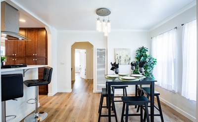 Welcome to 7807 Dalton Avenue, a beautifully remodeled Spanish-style home located in the heart of Los Angeles. This stunning 3-bedroom, 2-bathroom home boasts a perfect blend of contemporary updates and charming original details. The well-appointed living room features an oversized picture window, a modern electric fireplace and arched doorways that lead to the formal dining area. This home boasts elegant laminate flooring throughout creating a warm and inviting atmosphere. The gourmet kitchen has been fully reimagined and updated with modern cabinetry, rarely seen quartz countertops, floor to ceiling pantry cabinets, new stainless-steel appliances, and an opened bar/counter just perfect for entertaining. The deluxe master suite features a spa-like bathroom where the custom shower with chic glass enclosure awaits you, in addition the suite has plenty of natural light from both the window and sliding glass door. The hall bathroom boasts a custom vanity, floor to ceiling tiled shower stall with a custom shower door providing a stylish and functional space for guests. Other amenities include a large laundry room, a two-car garage, and a beautifully landscaped backyard with a covered patio area perfect for outdoor celebrations and special occasions. Located just minutes from shopping, restaurants, and major entertainment venues, this home offers the perfect combination of style and convenience. Don't miss out on the opportunity to make this your dream home!