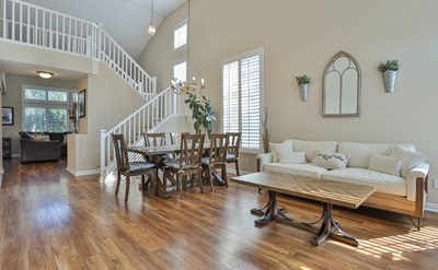 Detached beautiful home in the gated community of Sycamore Crossing has the open floorplan you’ve been looking for. Tall cathedral ceilings give it a light and bright feel. New AC/Heater. Newly painted inside and outside. Clean laminate hardwood floors and pristine plantation shutters throughout. Fresh white cabinets, quartz countertops, and a large center island with plenty of storage. Two laundry rooms allow for less laundry days or the option of downstairs garage access or upstairs closet use. Easy to maintain back patio. Low HOA fees with a great pool, spa, and playground. Privacy, space and location makes this a perfect home!