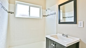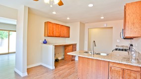 Completely remodeled - Central heating and A/C.! Ready for you to make this house a home. Enjoy the areas tree-lined streets. All new everything! New bathroom featuring custom tile and new fixtures. New vanities with upgraded lighting. Kitchen is all new with beautiful granite counter tops, new cabinets, new stainless steel appliances including dishwasher and built in microwave. New mirrored closet doors, new ceiling fans, new upgraded flooring throughout home. New dual pane windows. Drought tolerant landscaping. New plumbing fixtures, new water heater, its all new!!