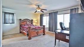 This turnkey, two story "Lennar" built 3 bed, 2.5 bath home rests on a quiet culdesac in an amazing community. This floorplan is spacious and open. The ground floor offers a huge formal living and dining area, gourmet "Country Style" Kitchen complete with Granite Counters, Center Island, new G.E. Oven and Microwave as well as stainless sink and new satin fixtures. Flooring is polished Travertine (Which runs throughout the entire ground floor) accented with designer paint and brought together with custom 2 panel doors, Crown Molding and over sized Baseboards! Upstairs one will find the huge Master Suite which flows into the bathing area accented by a separate tub/shower, dual sinks and a massive Master Closet! The remaining bedrooms are also spacious and there is even a library upstairs complete with desk and storage. The laundry room is conveniently located upstairs and offers racks and storage. There are ceiling fans and canned lighting throughout the home! The rear yard is an entertainers delight and features an outdoor kitchen and bar (with its own built in fire pit feature). There is a separate conversation area complete with fire pit a coy pond and an abundance of room for storage on each side of the home. there is plenty of room for a pool should one so desire. The three car tandum garage is full of custom cabinetry and plenty of room for all ones toys. The neighborhood "Spencer's Crossing" offers parks, pool, clubhouse, hiking trails and much more. Close to schools, shopping and freeways! Don't miss out!