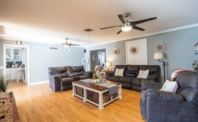 Beautiful old town Corona sprawling single story on a large 11,326 square foot corner lot! This home is 2167 Square Feet with 4 bedrooms, and 3 bathrooms all with showers! This home has a very spacious floorplan with large rooms and modern features. Great curb appeal with a lush green lawn & custom brick siding. Extensive laminate wood flooring from the the entry throughout most of the home which leads you into a huge family/great room area with a gas fireplace! Step saving kitchen with window looking through to the family room area. Behind the family room there's a sun room/breakfast room that extends across the back of the house, and there's also a separate formal dining room! The main bedroom has double built in closets/shelving and the main bath has Quartz Counters with 2 sinks & a tub/shower combo. There's 3 additional bedrooms including one double size bedroom (or bonus room) with space for a large closet. The second bathroom has been remodeled with quartz counters, 2 sinks, updated cabinets, and a shower. The breezeway between the house and the 2 Car garage has been closed in with access from the main house that turns this into a 3rd car garage! The garage also has it's own full bathroom with a shower too & an extra large laundry area! Outside is your own private Oasis with a built in & heated pool & spa with plenty of patio/decking around it. There's are also large side yards on both ends of the house with potential for RV parking on one side or it could be used for storage, dog run, etc...Great location centrally located in Corona with low taxes (no mello roos) and no HOA fees!