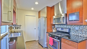 Main level offers an open concept dining area, modern living room with soaring vaulted ceiling, romantic gas fireplace and a fully remodeled kitchen with custom frosted cabinets, backsplash, stainless steel appliances, and balcony access with view. Master bedroom suite with private bath, second bedroom, guest bathroom and secluded laundry area are also found on the main floor. Upstairs level includes a recently remodeled oversized bedroom, with built-in open closet, city views and no common walls. Additional benefits include creative interior design for noise reduction, central air and heat, ceiling fans in all bedrooms, secured underground parking with two side by side designated parking spots and 5 guest parking. Central location and close to Griffith Park, local golf courses, Hollywood restaurants, Greek Theater, The Observatory, Biking, Walking and Dog Trails, Horse Track, Union Station, and the 5 and 101 freeways. LOW HOA Dues include trash, hot water, building maintenance / cleaning