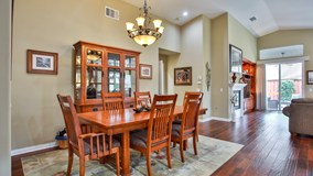 BEAUTIFULLY UPGRADED AND CUSTOMIZED HOME LOCATED IN THE PRESTIGIOUS 55+ COMMUNITY OF FOUR SEASONS FULLY GATED W/24 HOUR SECURITY, SURROUNDED BY HEMET GOLF COURSE AND HILLS. PROPERTY IS ON A VERY PRIVATE CORNER LOT. INVITATIONAL MODEL THREE HAS 2 BEDROOMS, 2 BATHS, PLUS DEN/OFFICE OVER 2000 SQ FT GREAT OPEN FLOOR PLAN WITH BUILT IN TV CONSOLE AND FIREPLACE IN GREAT ROOM IMMACULATE ENGINEERED HARDWOOD FLOORS. KITCHEN IS A COOKS DELIGHT LOTS OF CABINETS AND GRANITE COUNTER SPACE PLUS LARGE ISLAND WITH BUILT IN WINE REFRIGERATOR. FANS IN EVERY ROOM. OUT DOOR IS A FULL PATIO WITH BUILT-IN BARBECUE AND LOVELY WATER FEATURE PERFECT FOR ENTERTAINING. SPACIOUS 2 CAR GARAGE WITH LOTS OF CABINETS AND WORK BENCH. ALL THIS PLUS NO MELLO ROOS ON THIS LOT. THE COMMUNITY HAS BEAUTIFUL LODGE WITH BALLROOM, MOVIE THEATER, BISTRO, LIBRARY, COMPUTER ROOM, BILLIARD ROOM, CRAFT ROOM, BEAUTY SHOP, EXERCISE ROOM PLUS LOTS OF ACTIVITIES. LARGE POOL AND SPA PLUS TENNIS COURTS MAKE THIS COMMUNITY AND HOME A MUST SEE.