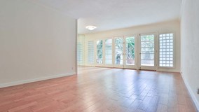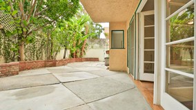 Beautiful, bright, lower, front facing contemporary condo that feels like a home. This condo has been upgraded with the new paint, laminated hardwood flooring, carpet and much more. Very open and bright living room with french doors that open to a huge private 600 square foot patio - perfect for entertaining, a pet, or children. Tons of storage & closet space. Smaller, intimate building with low HOA dues help make this a practical purchase. Very desirable community close to Brentwood Village shopping, restaurants, Whole Foods and much more!