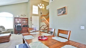 The pride of ownership shows immediately in the curb appeal of this home. Brick and rod iron fencing surrounds the beautiful front lawn and mature landscaping. Entering onto tile floors you are taken by the cathedral ceilings and bright open nature of the floorplan. Stepping down onto the living room carpet you notice neutral colors, lots of windows and a connected dining room. The kitchen features lots of cabinets, updated counters, a breakfast bar, and room for a 4 person table. The kitchen is open to the family room which features a wood burning fireplace. Stepping out onto the covered patio you find a four tiered blank canvas of back yard waiting for your touches of style and color to surround the fire pit. There are planters that surround the home also waiting for your personal touch. A two car garage and a half bath complete the first floor. Up the stairway and to the right you will find the master bedroom with Vaulted ceilings and lots of east facing windows to enjoy the morning light. The master bath features lots of tile, one piece counters, a walking closet with two entries, and a separate commode. Three additional bedrooms and a full bath complete the upstairs. A great Corona neighborhood with no HOA and low taxes help keep this home affordable.