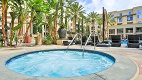 Avenue One is a luxury condo complex located in the heart of the Irvine Business District. This condo is a 2nd floor condo facing the greenbelt, allowing for extra privacy. Condo is impeccable, with granite countertops, updated cabinets, hardwood floors, and berber carpeting. It is walking distance to UCI and close to many large companies including Hyundai, Google, USDA, Chase, Zillow, Allergan, KPMG, and Deloitte. Close proximity to the freeways, John Wayne Airport, and shopping make this the ideal location for on to go professionals. Drive into the parking garage and you will notice 24 hour security, a resort-style pool, fitness center, basketball courts, tennis courts, and a luxurious lounge center with big screens televisions. Within this complex are local stores and restaurants including Avocado Café, Fukuda Japanese restaurant, Phan 55 Asian Fusion Cuisine, and Barry's bootcamp. For the avid cyclist, there is close access to the bike trails to Newport Beach Back Bay. Refrigerator, washer, and dryer are all included.