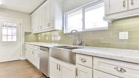 new shaker style cabinets, marble counter tops, stainless steel appliances and