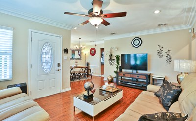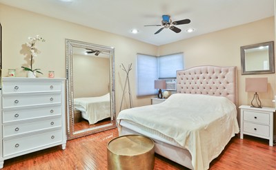 The kitchen has been remodeled with newer cabinetry and granite counters with stainless steel appliances. There is a large laundry room that may not be permitted but has been done in good taste. There is central heat and air, refinished hardwood floors and two remodeled bathrooms. The master bathroom was a large walk-in closet and the owners converted it without permit to a modern 3/4 bathroom. The large backyard features fruit trees and a newer gazebo on a cement slab with a BBQ that is perfect for entertaining. The double car garage has been drywalled and has a window air conditioner and would be a perfect ADU.