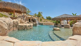 a slide, a waterfall and kitchen for the perfect outdoor entertainment. This Elite estate home has its own Avocado