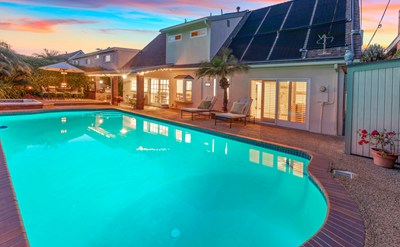 Welcome to a charming home that embraces the indoor-outdoor style of living that Southern California is known for. During the day, sit under the covered patio and read a book or enjoy splashing around in the sparkling pool or spa. Lunch is served with a view. The built-in BBQ makes entertaining a breeze and in the evening you can enjoy alfresco dining under the stars with friends and maybe a glass of wine. It is a delight to cook in this kitchen, loaded with plenty of quartz counters, custom white shaker cabinetry, double ovens, a gas cook top and who wouldn’t want a window over the sink with a pool view! This home has 2 HUGE bedrooms upstairs with a double bathroom! Downstairs has an optional dedicated master suite which is now being used as a family room with a sliding glass door to the yard; plus there is an additional downstairs bedroom and a bathroom. The circular floor plan is great for entertaining and can accommodate large gatherings. The spacious offset living room features a cozy fireplace with used brick hearth and a wonderful bay window to enjoy the front yard view. Located in the desirable Beach North tract, there is a neighborhood park just around the corner. Also located close by is Huntington Central Park and Library, dog park, dog beach, shopping, transportation and of course enjoy a stroll at our famous Surf City beach & pier or a relaxing duffy ride around Huntington Harbour...it's all easy to get to from your new home.