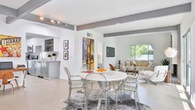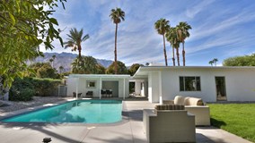 A masterful 1959 Meiselman recently renovated with porcelain tile flooring, quartz counter tops, BOSCH appliances, new decking outdoor decking, updating systems including HVAC, electric and plumbing, NEW ROOF, replaced tongue and groove ceilings boards, re-plastered pool, practically a new home. Live the LAVISH Palm Springs lifestyle that you have been dreaming in this mid-century modern Meiselman, or enjoy some passive income with a perfect pied de tier or vacation rental. Note the outdoor bar and bonus structure perfect for an artist retreat or even guest house. New corrugated aluminum fencing, low maintenance desert landscape, pack your suitcase and come enjoy the good life in PS!