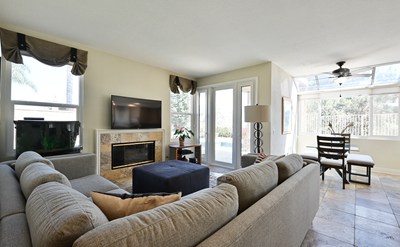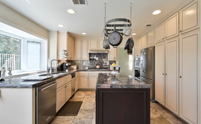 Welcome to this beautiful Rancho Via Verde 4 bedrooms and 3 bathrooms home situated on a quiet cul-de-sac. The grand entrance welcomes you with an open floor plan and an abundance of natural light throughout. Both the living room and dining room offer vaulted ceilings for the open feel buyers are looking for. The renovated kitchen is designed for intimate family dinners or large gatherings and entertaining. Newer professional grade appliances complement the newer cabinets and granite countertops. On the main level, there is 1 bedroom with a full restroom that is perfect a guest room or that elusive down stairs bedroom needed for family members who prefer not to go upstairs . The Master bedroom is very spacious and offers a two sided fireplace, deck with mountain views, walk in closets, office area and ensuite restroom with high ceilings. Entire home has been tastefully renovated with modern design and finishes. Upgrades and amenities include, Dual pane windows, 200 amp Electrical service, Natural stone flooring, modern updated restroom, interlocking paver driveway, 3 car garage, pebble finish hardscape in back yard, in ground Spa, custom window coverings, indoor laundry room and even a wet bar. Current owners are the original owners and bought this model home from the builder. This home has been meticulously maintained and loved.