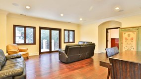 This magnificent gated serene ranch/estate built in 2009 is located a short drive from Los Angeles. The breathtaking resort is nestled on 8 acres (2 lots) and features a magnificent 6,400 sq. ft. Tuscan Villa as well as a detached 1,800 sq. ft. fabulous guest house. The 2-story impressive sky lit entry has soaring ceiling with a beautiful fountain. A huge media room, designer gourmet chef kitchen with state-of-the-art appliances and a breakfast area overlooking park like grounds .A stunning romantic master bedroom suite with a private office, his and her closets with a huge balcony deck overlooking the grounds. There is also an outdoor living and dining room with a fireplace overlooking the amazing grounds with ancient oak trees and a man made filtered swimmable lake with waterfalls and fountains. There is a stable with room for six horses and also a petting animal zoo. This is an incredible setting for privacy and entertainment, spiritual meditation, horse enthusiast and a true relaxation experience.