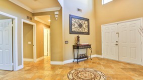 Gorgeous, upgraded South Corona home with 4 bedrooms + Downstairs Office/Den, 3 Full bathrooms and 3 car garage. Step into a grand entry way with detailed tile medallion with beautiful slate tile layout throughout the downstairs and wrought iron stair railing. The formal living and dining rooms feature upgraded high baseboards, crown molding, impressive built in shelving and newer carpet and paint. The dining room has a sliding door that leads out to the backyard and is conveniently located just off the kitchen. The kitchen is equally upgraded with stainless steel appliances including 6 burner stove, walk in pantry, gorgeous granite counter tops, and island with bar seating. The kitchen and family room feature more beautiful crown molding and recessed lighting. The kitchen eating area is spacious and inviting with bay window. The family room is both functional and elegant with more beautiful built in cabinets and shelving, gorgeous fireplace hearth, built in surrounds sound system and ceiling fan. Downstairs features a full bathroom and an office/den that could easily be used as a bedroom. Even the upstairs hallway is impressive opening to the entry way with the wrought iron railing continuing upstairs. The master bedroom is grand with double door entry, high ceiling, and stylish light fixture. The in suite master bathroom features, slate tile flooring, more of the beautiful tile from downstairs in the shower and surrounding the large soaking tub, large walk in closet, and dual sinks. The three remaining bedrooms are spacious and feature newer carpet, fresh paint and upgraded baseboards. The third bathroom features a beautiful tile counter top, dual sinks and slate tile flooring. The backyard is low maintenance with concrete and brick hardscaping, large covered patio, and raised patio area perfect for entertaining and fruit trees including a fig tree along the side yard in the built in planters. The exterior also has been recently painted. Located in a beautiful community with NO HOA make this home perfect!