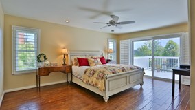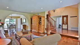 Classic design - regal curved staircase, newly refinished hardwood floors throughout, a fully upgraded kitchen with warm oak cabinetry and granite counters, double pane windows, skylights, plantation shutters, and so much more. The spacious master suite boasts travertine, luxurious jetted tub as well as an additional powder room, with the 3 additional bedrooms being equally generous in size.