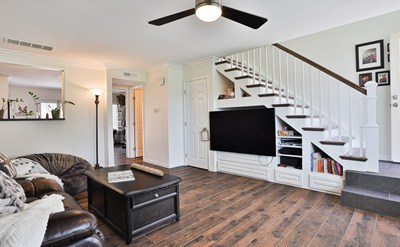 This is the location and remodeled townhome that you’ve been waiting for... Private & secluded cul-de-sac location away from other buildings - with open vistas from the front & back. Featuring durable wood tile flooring downstairs, an updated kitchen complete with stainless appliances, white shaker cabinets, quartz countertops and subway tile backsplash. Bathrooms have been tastefully updated. Upstairs and you’ll be greeted by an oversized master bedroom with beautiful views. Some other quality features are plantation shutters downstairs, upgraded crown molding & baseboards throughout, dual pane windows and re-piped in the last few years! Only unit in the building with DIRECT ACCESS GARAGE through patio. Enjoy the enclosed patio that opens up to the greenbelt with easy access to Darrin Park for lots of entertaining and recreation opportunities. The community features a pool/spa and tennis courts. Just off the major thoroughfare of El Toro Road, but set back far enough for peace and tranquility - you’ll love everything about it! 5 minutes from the freeway and a short walk or drive to Starbucks, Stater Bros., Chipotle & much more! This home is a great opportunity!