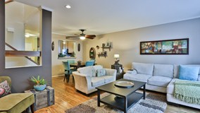 Nestled in the quiet hills of Orange you will find this beautiful townhouse featuring 2 bedrooms and 1.5 bathrooms. As you enter this fabulous home you will notice the rich colors of the wood laminate flooring and designer paint, the kitchen features tile counter tops, stainless steel appliances and plenty of storage space. The spacious living room features upgraded crown molding, ceiling fan, dining area, recessed lighting and cozy fireplace. The dual pane sliding doors open up to a private brick patio featuring a newer fence and closet area for even more storage. The downstairs guest bathroom features wainscoting and a closet laundry area. As you proceed upstairs to the master bedroom you will notice the large window and mirrored closet doors add plenty of light to the room. The main bathroom features two sinks, tub and skylight. The second bedroom has a spacious walk-in closet. Upgrades include dual pane windows throughout and tank-less water heater. Beautiful resort style association pool, spa, clubhouse, and barbecue areas. Minutes from Irvine Regional Park, Peters Canyon Regional Park, and Santiago Canyon College. Easy access to schools, shopping, dining, and freeways.