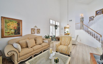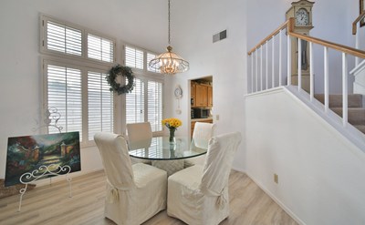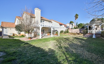 Beautiful move in ready 4 bedroom, 3 bathroom home featuring a downstairs bedroom and full bathroom + 3 car garage, located in the Orangecrest area of Riverside. Step into the spacious entryway to soaring vaulted ceilings that flow into the formal living and dining rooms. Both rooms feature plantation shutters which can also be found throughout the home, as well as wood flooring. The kitchen is conveniently located just off the dining room, perfect for entertaining guests. The kitchen has stainless steel appliances, plenty of counter space, a spacious pantry as well as views of the very private backyard. Just off the kitchen is the eating area and family room featuring a fireplace. Rounding out the downstairs space is a bedroom and full bathroom + the laundry room adjacent to the 3 car garage. Upstairs you'll find the spacious master bedroom which features vaulted ceilings and a private patio overlooking your backyard. The attached master bathroom boasts dual sinks, separate soaking tub, shower stall, toilet closet and spacious walk in closet. The remaining 2 bedrooms share the 3rd bathroom located in the hallway. With no neighbors located directly behind you, the backyard is a private sanctuary to relax in. Features of the yard include a covered patio offering shade on hot summer days, the flower beds with roses blooming and the custom brick pathway leading to a raised gazebo that overlooks the yard and the private space behind your home. One of the most unique and exciting features of this property lies just beyond your backyard property line to a spacious strip of land, while owned by the city, that can be developed as you choose, extending the opportunities available for your outdoor living space. Conveniently located, this property is just minutes from the 215 Fwy, walking distance to Bergamont Park, and a five-minute drive to shopping, restaurants, retail stores, and schools.
